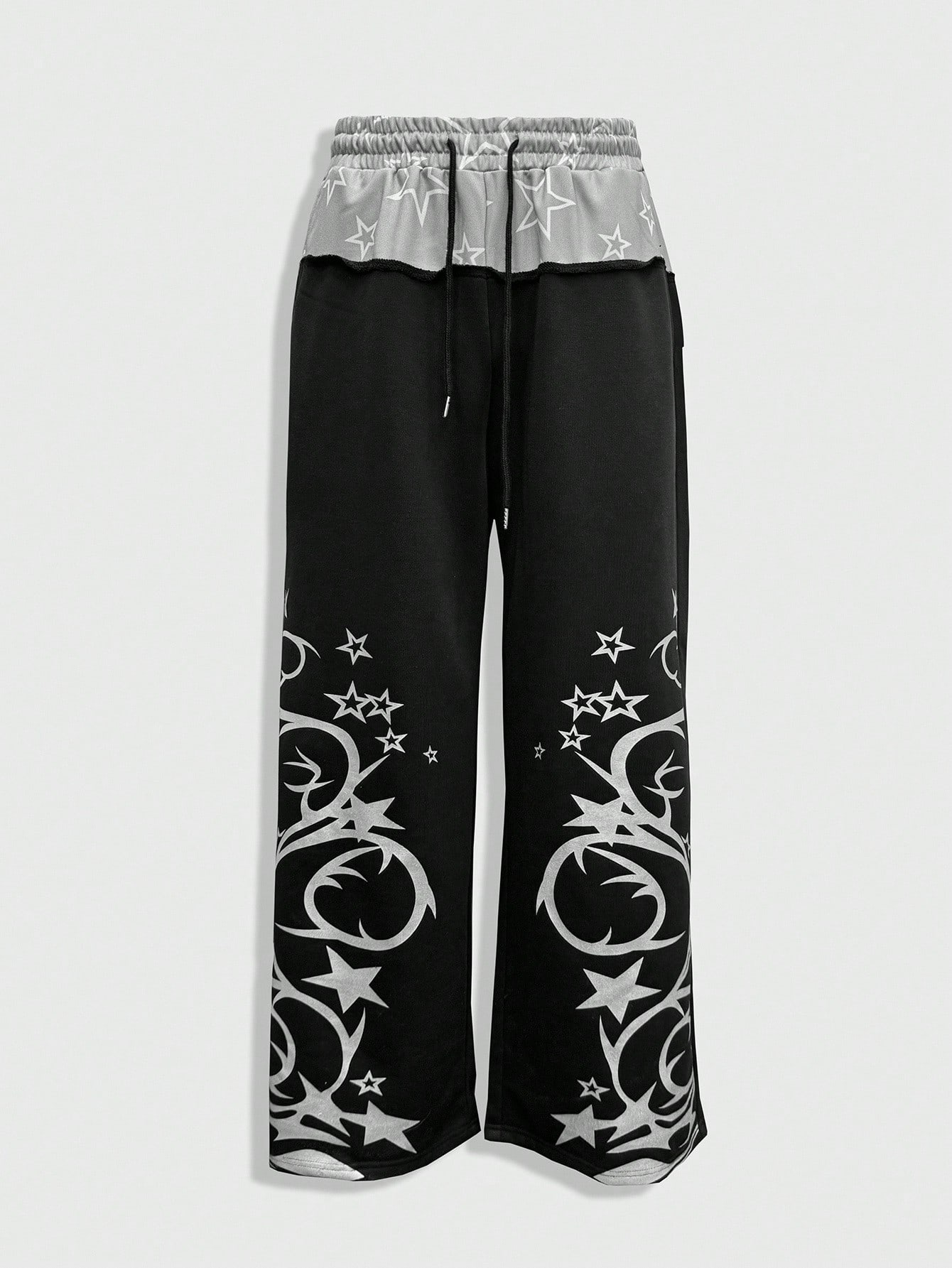 Goth Men Fashion Contrast Color Star Patchwork Print Pants, Fall