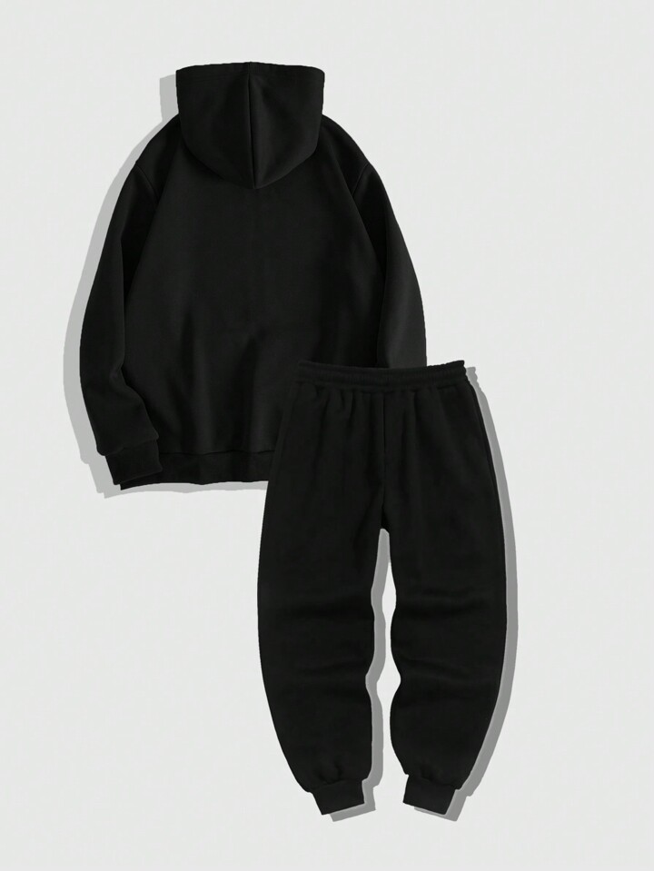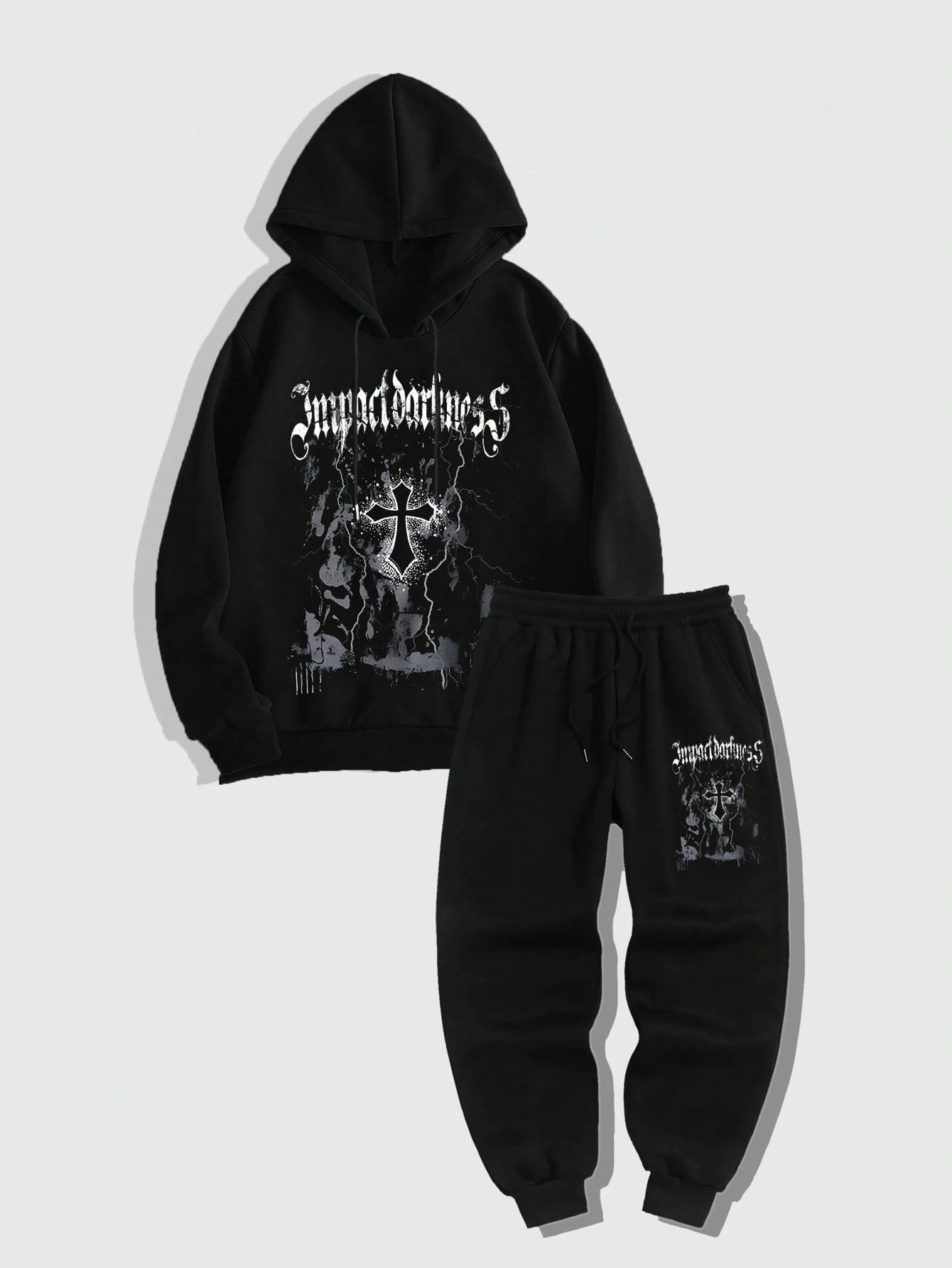 Goth Men Letter Graphic Drawstring Thermal Lined Hoodie & Sweatpants