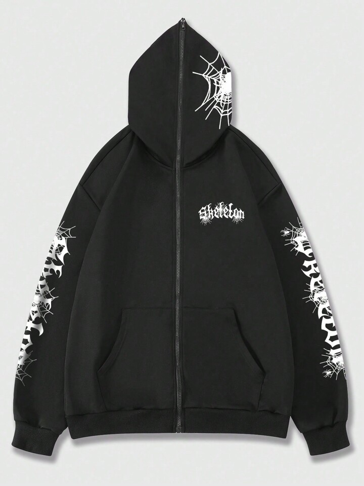 Goth Men Letter Graphic Zip Up Hoodie