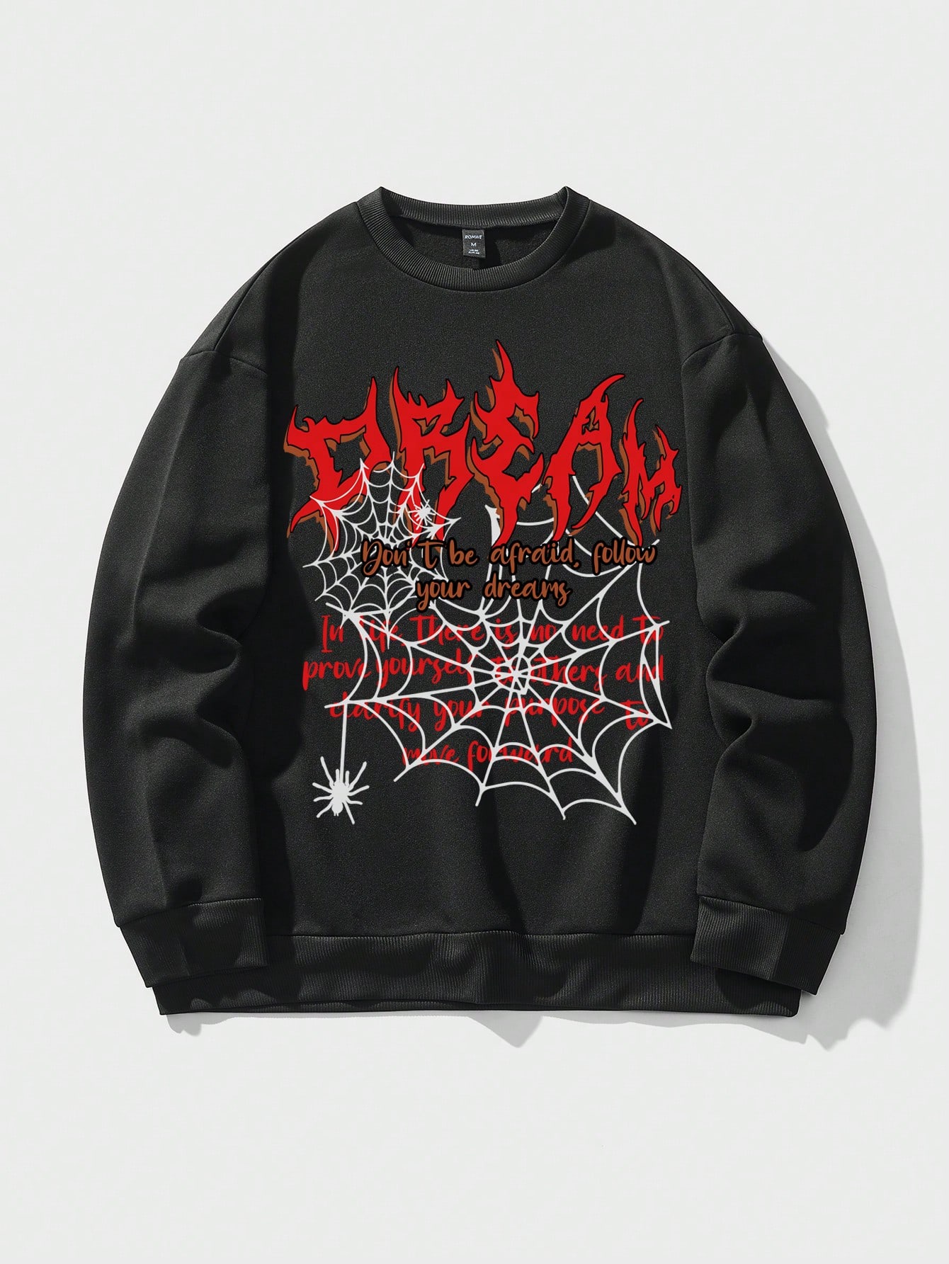 Goth Men Letter & Spider Web Print Thermal Pullover
