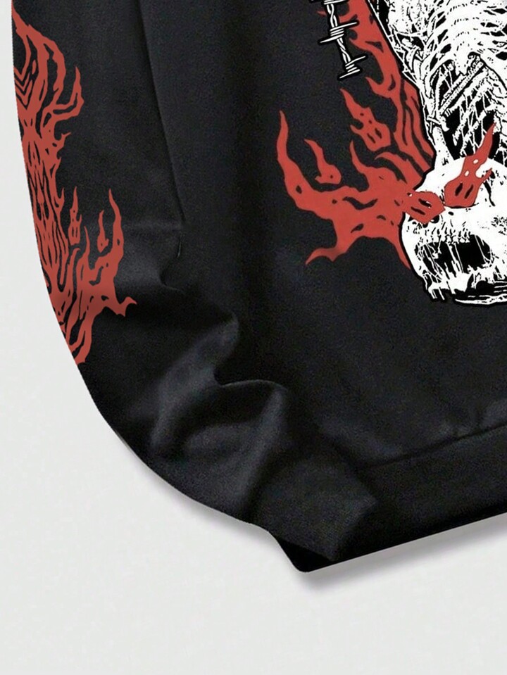 Goth Men Skeleton Print Sweatshirt For Halloween, School