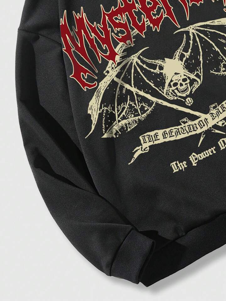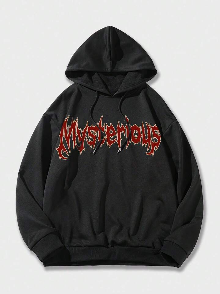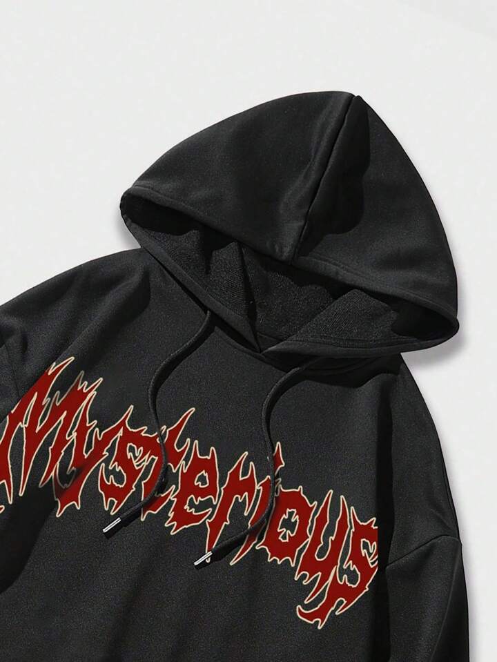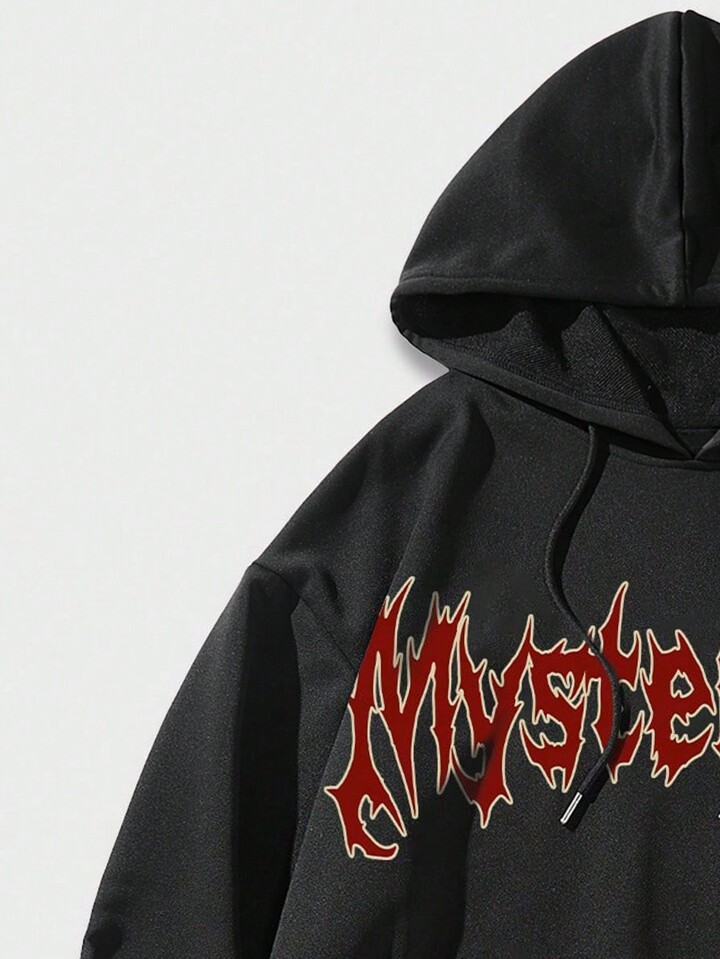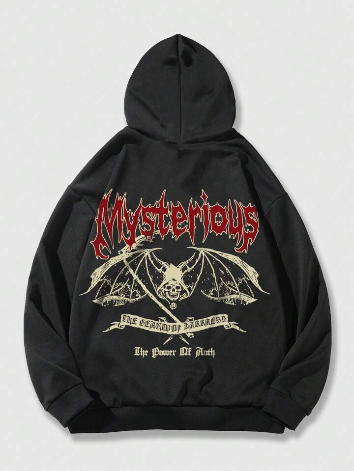 Goth Men Skull & Letter Graphic Drawstring Hoodie