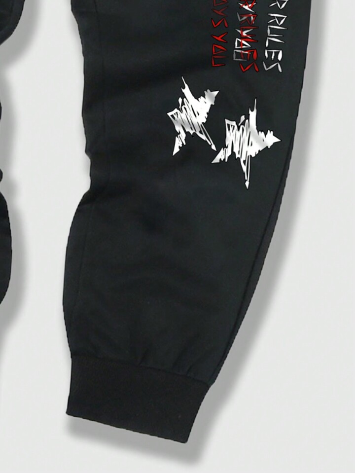 Goth Men Slogan Graphic Drawstring Waist Sweatpants