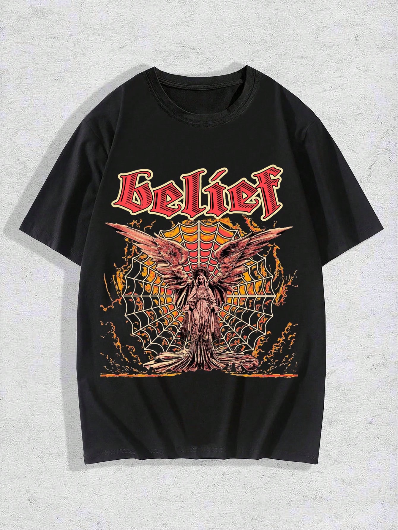 Goth Men's Angel & Letter Pattern Short Sleeve T-shirt