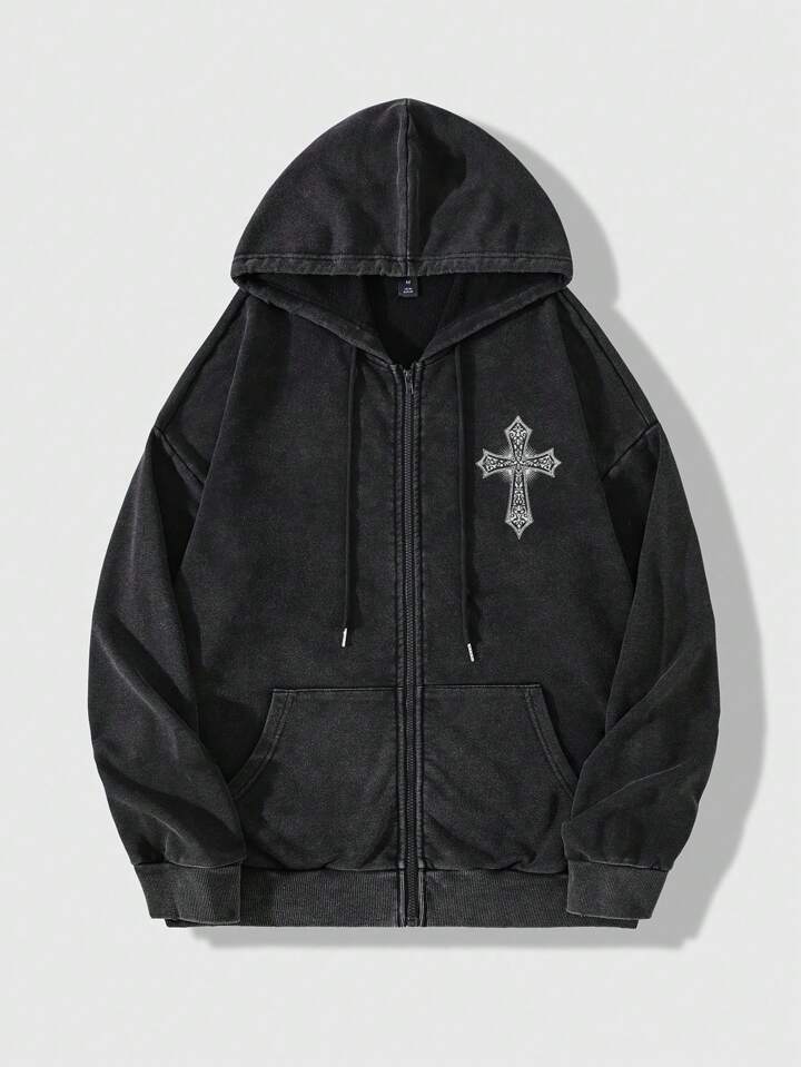 Goth Men's Casual Fleece Zip Up Hoodie, For Fall Winter