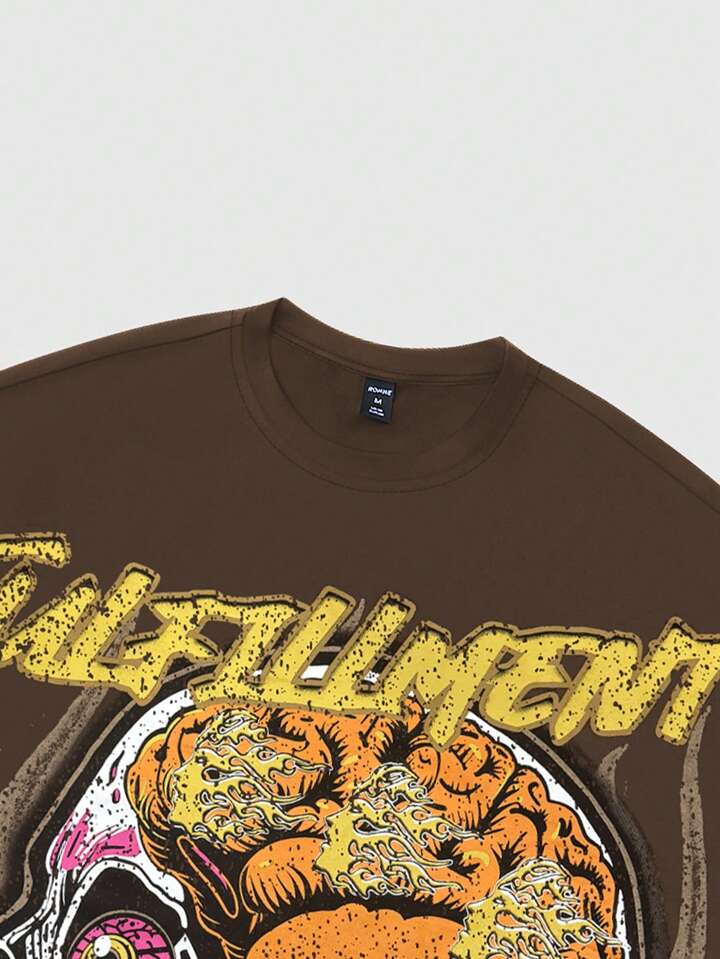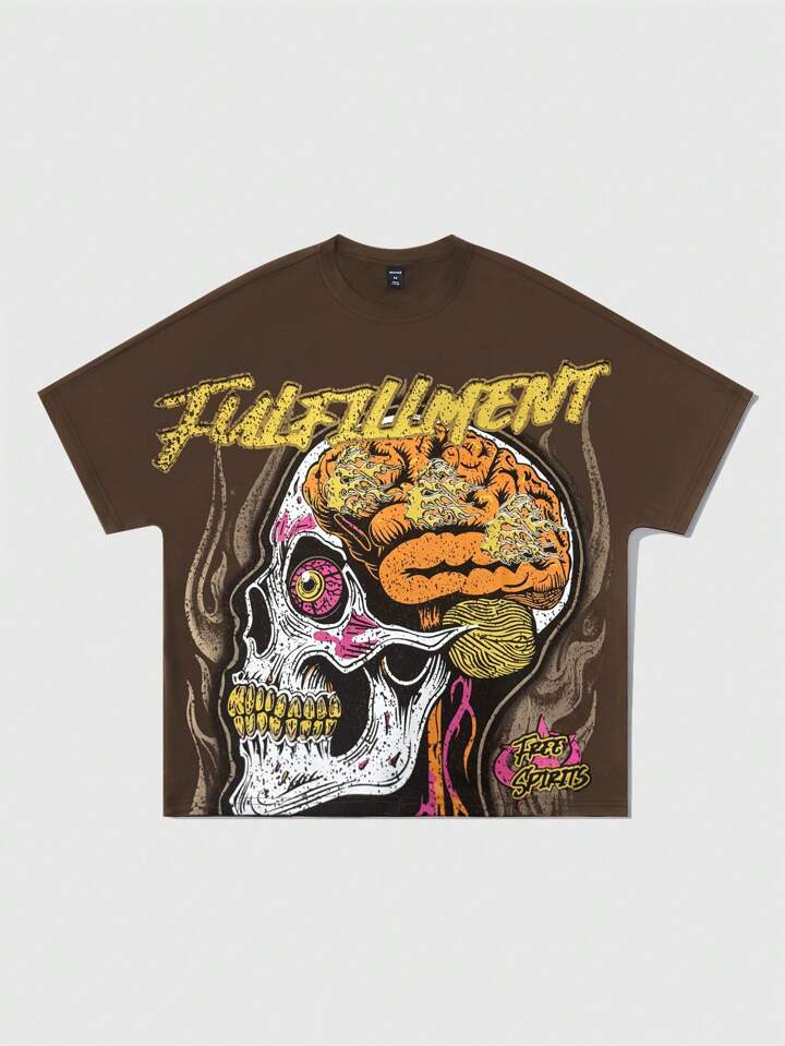 Goth Men's Casual Skull & Letter Print Short Sleeve T-Shirt For Summer