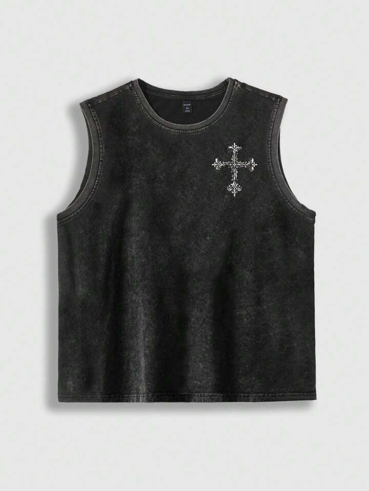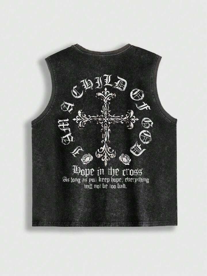 Goth Men's Cross & Slogan Graphic Casual Sleeveless Top