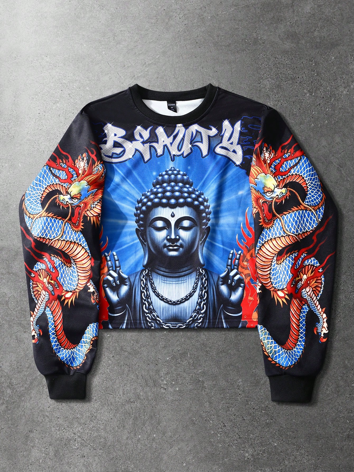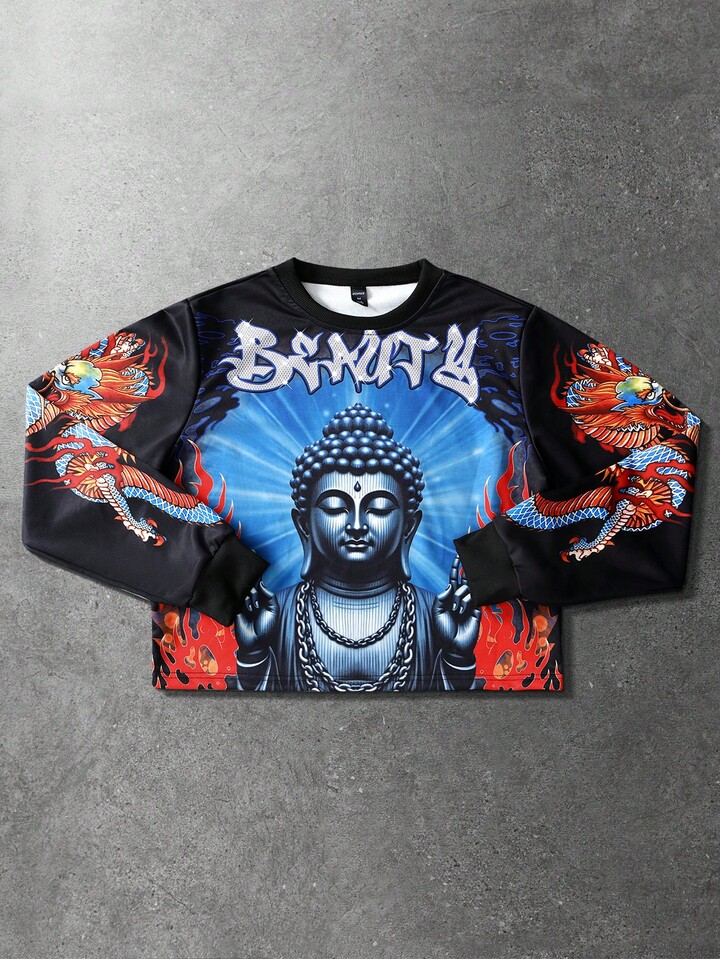 Goth Men's Fashionable Printed Crew Neck Long Sleeve Pullover Sweatshirt