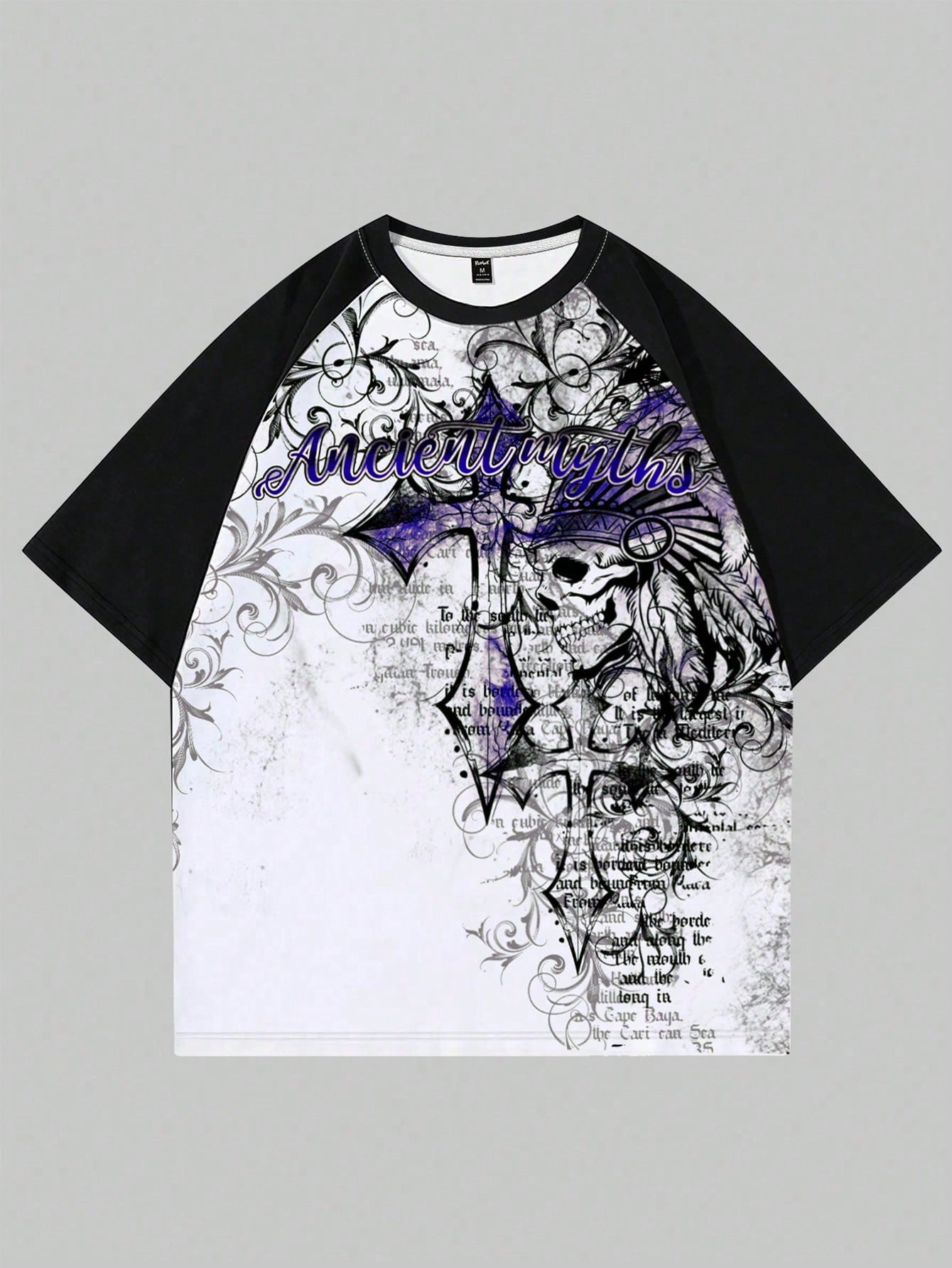 Goth Men's Letter & Cross Print Contrast Color Round Neck Raglan Short Sleeve T-Shirt