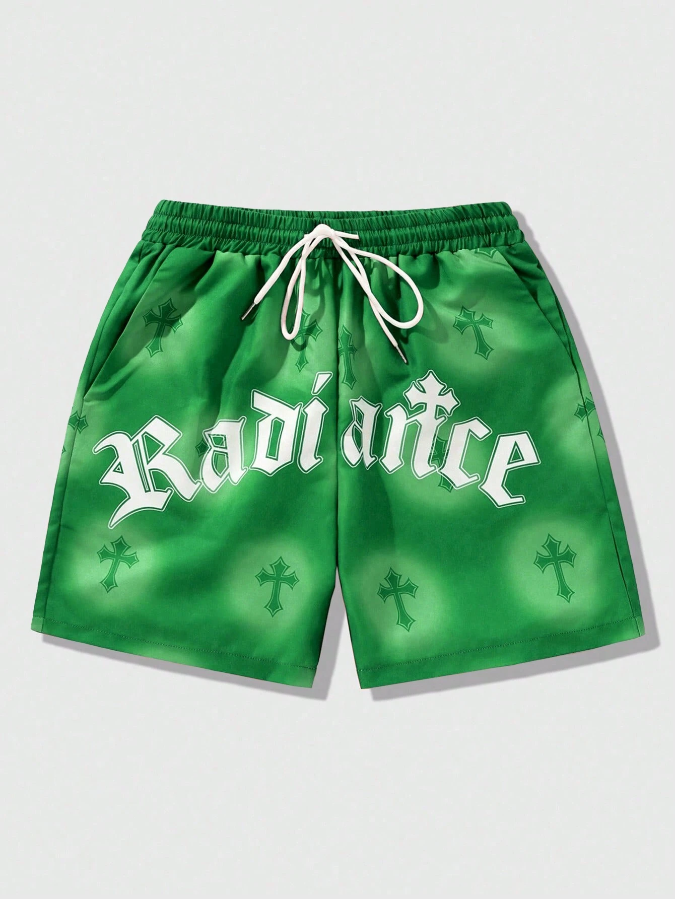 Goth Men's Letter & Cross Printed Shorts, Daily Wear, Suitable For Spring And Summer, School