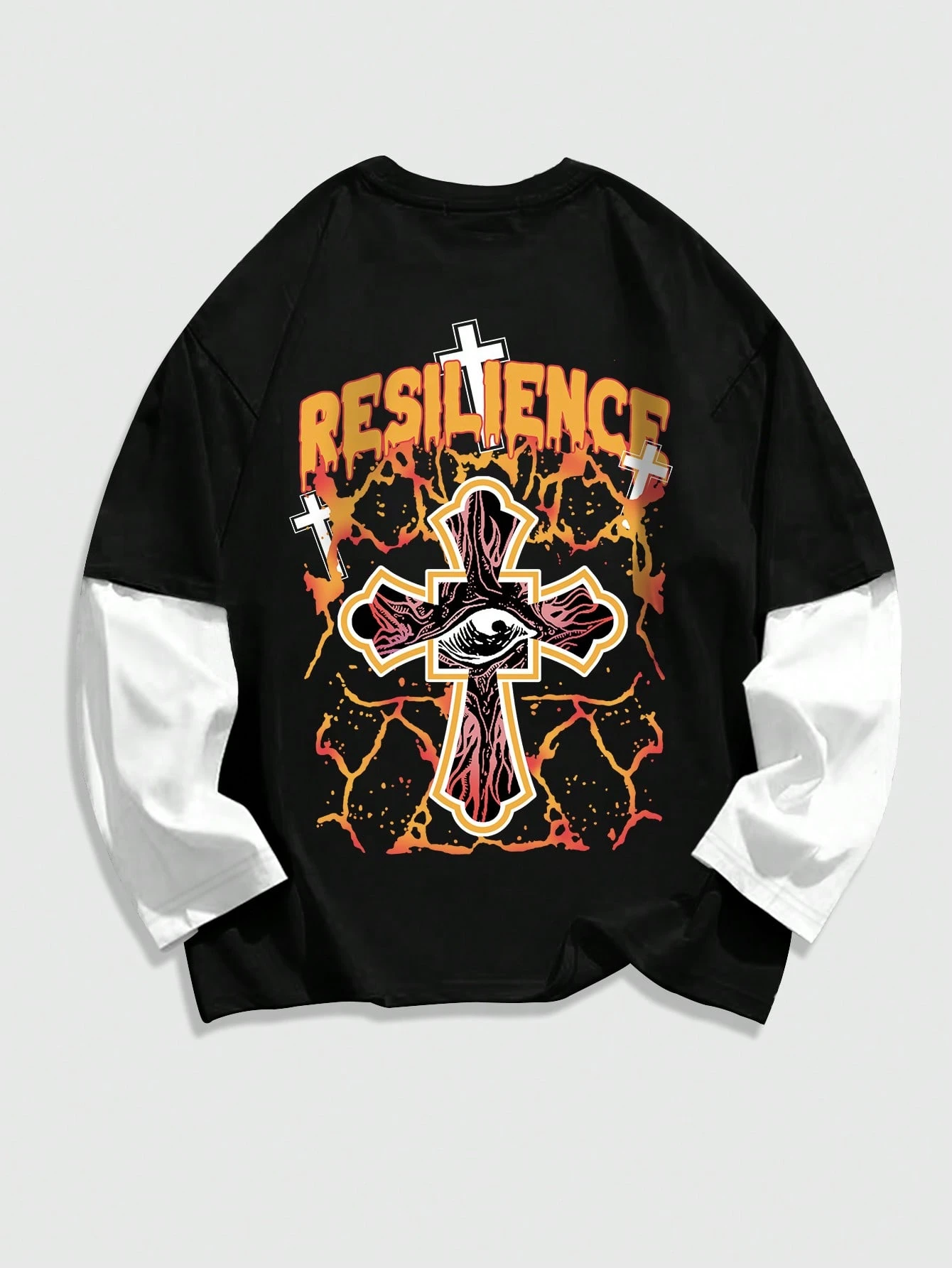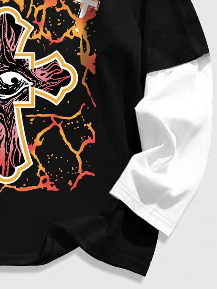 Goth Men's Long Sleeve 2 in 1 T-shirt With Text Print