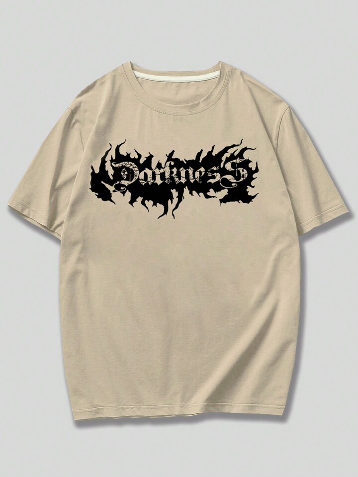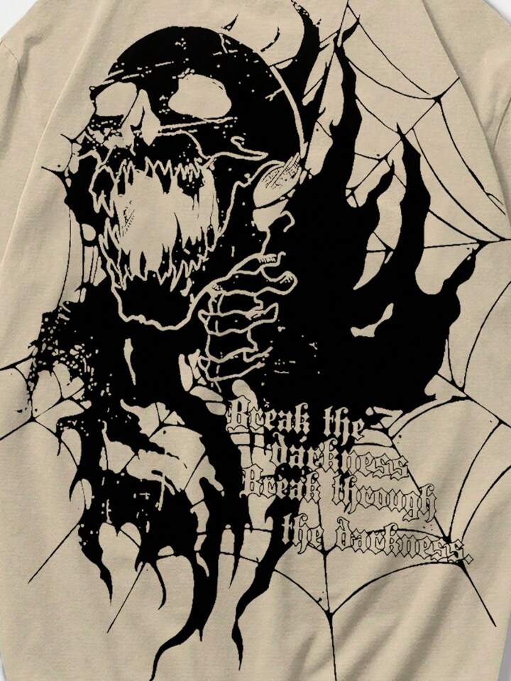Goth Men's Slogan Skull Printed Short Sleeve T-Shirt, School