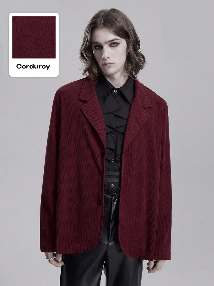 Goth Men's Solid Color Lapel Neck Single Breasted Casual Blazer Jacket, Spring & Autumn