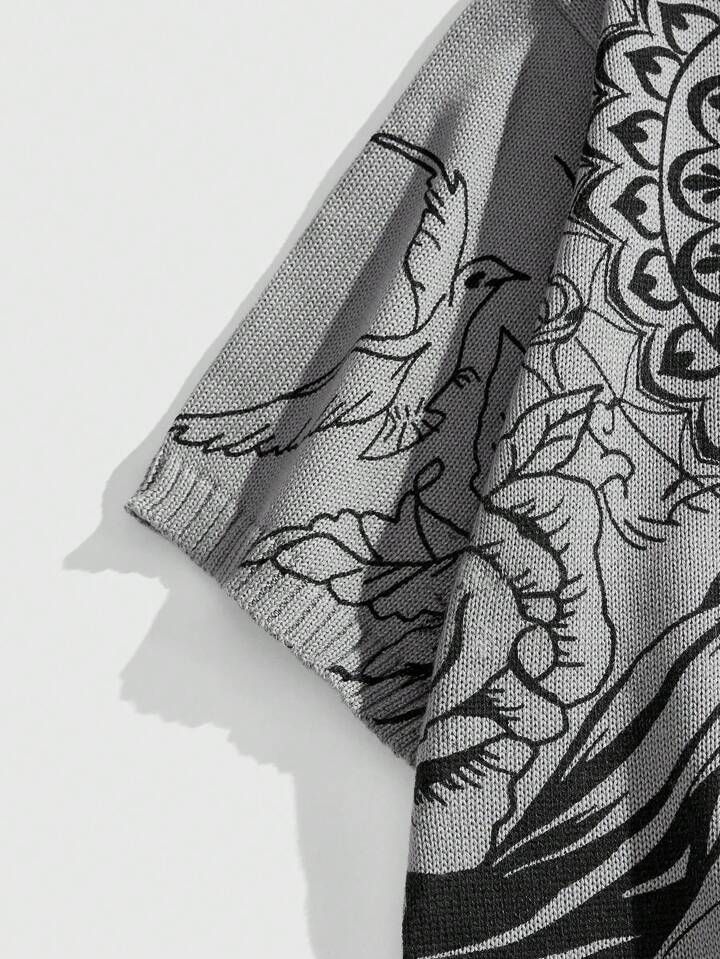 Goth Men's V-Neck Jesus Print Retro Casual Knit Sweater