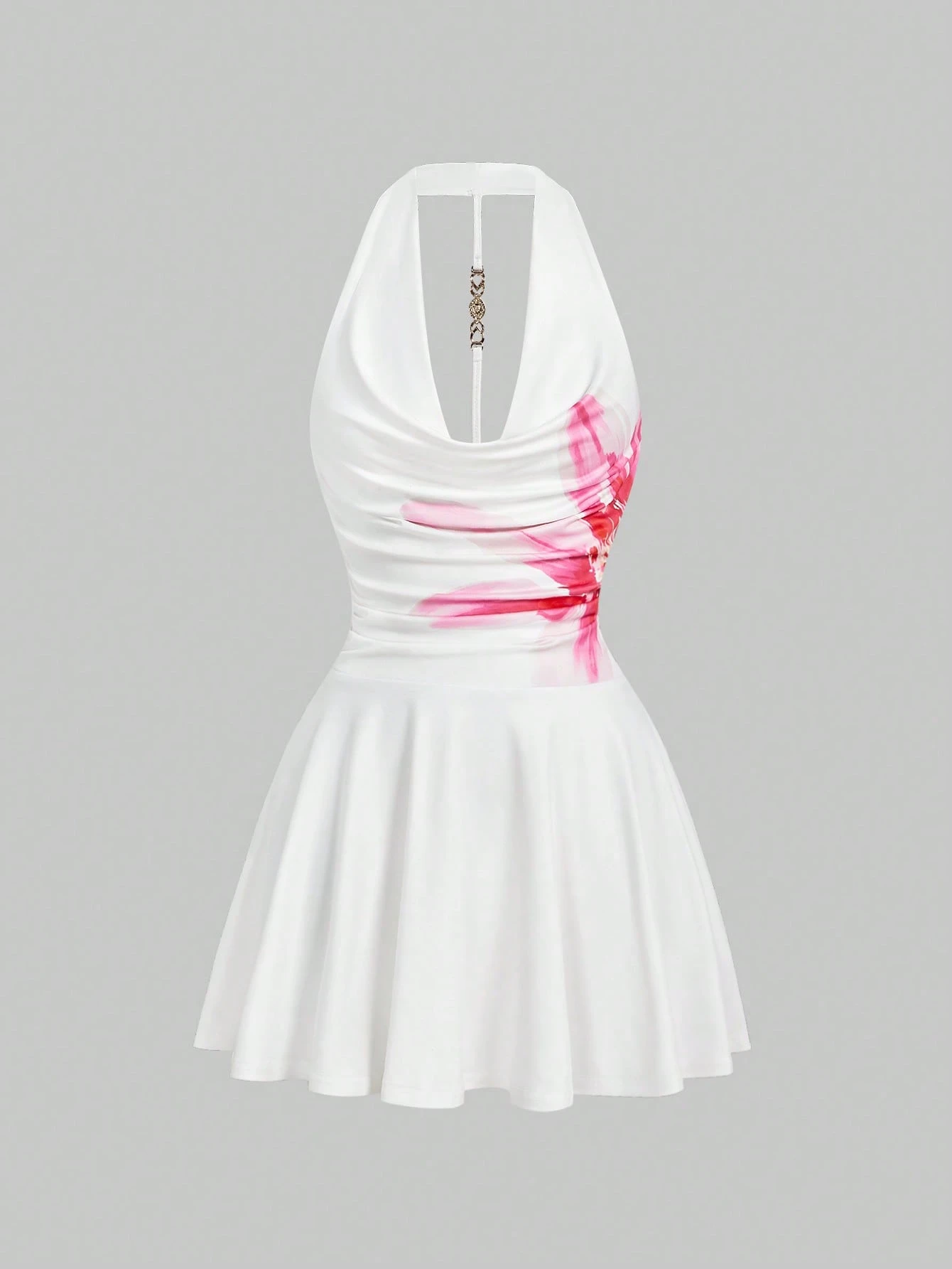 Goth Neck Tie Floral Print A-Line Backless Mini Dress, Vacation Style