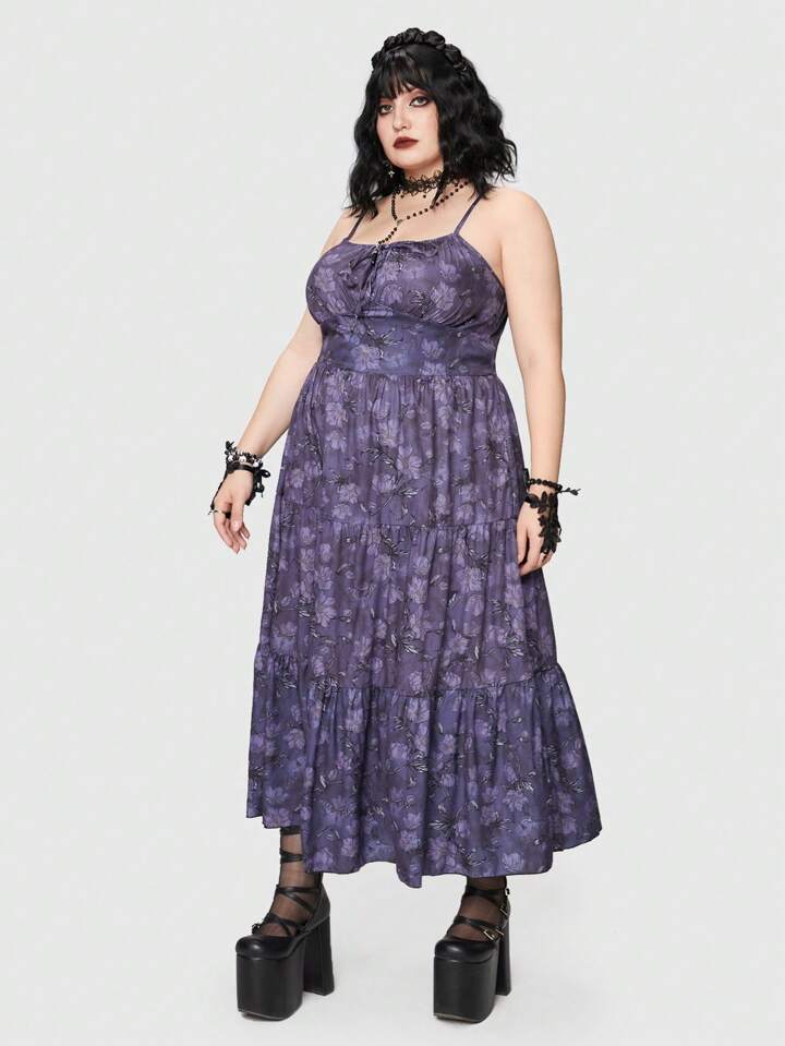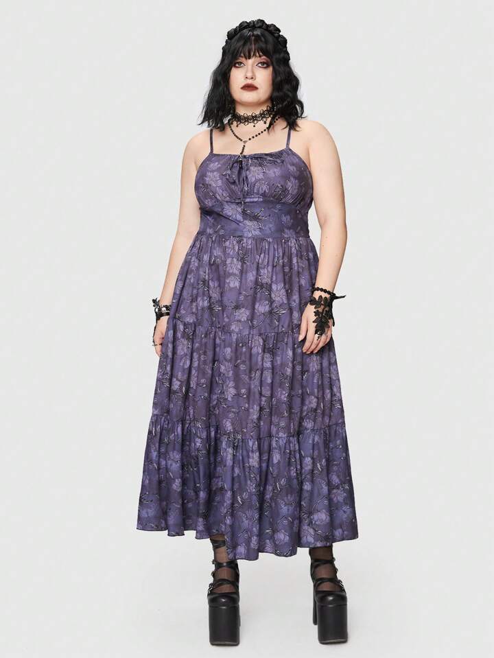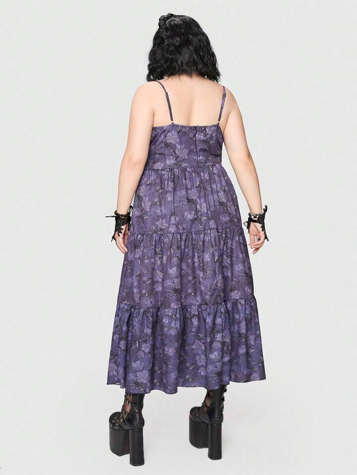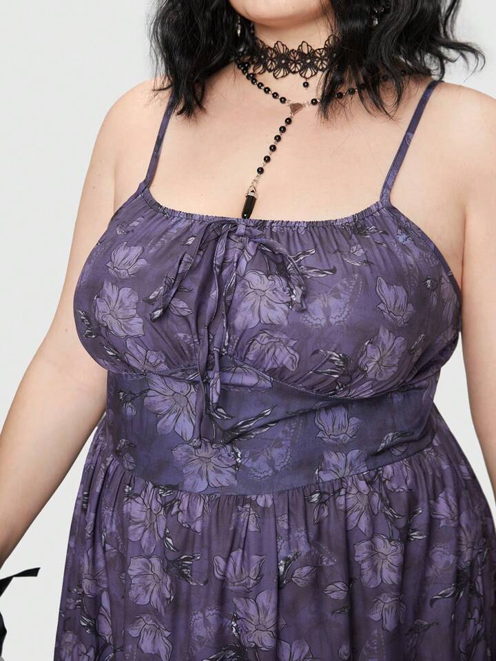 Goth Plus Floral & Butterfly Print Ruffle Hem Cami Dress Without Belt