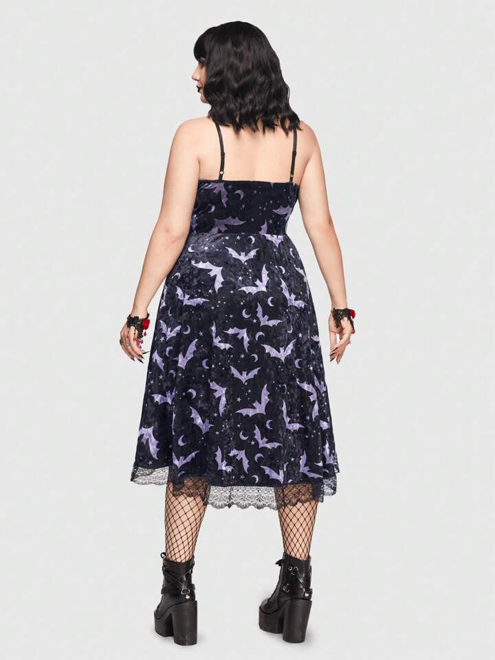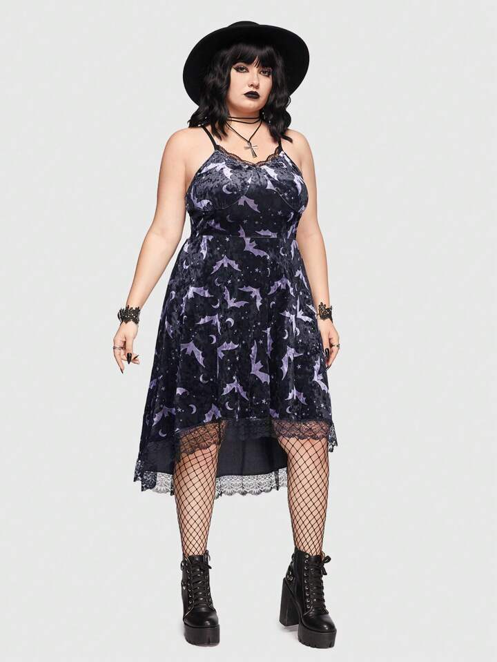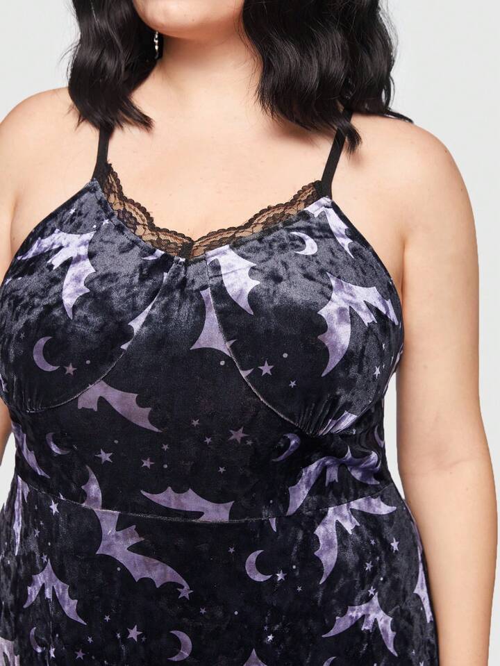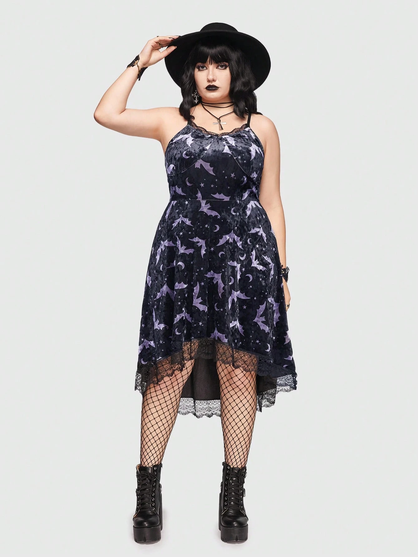 Goth Plus Moon & Star Print Contrast Lace Cami Dress