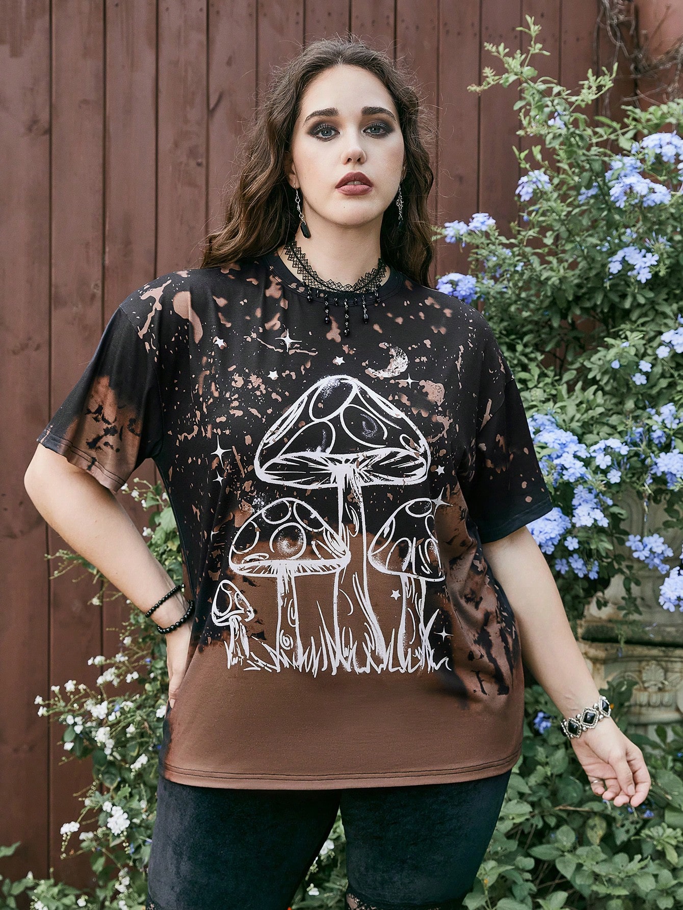 Goth Plus Mushroom Print Drop Shoulder Tee