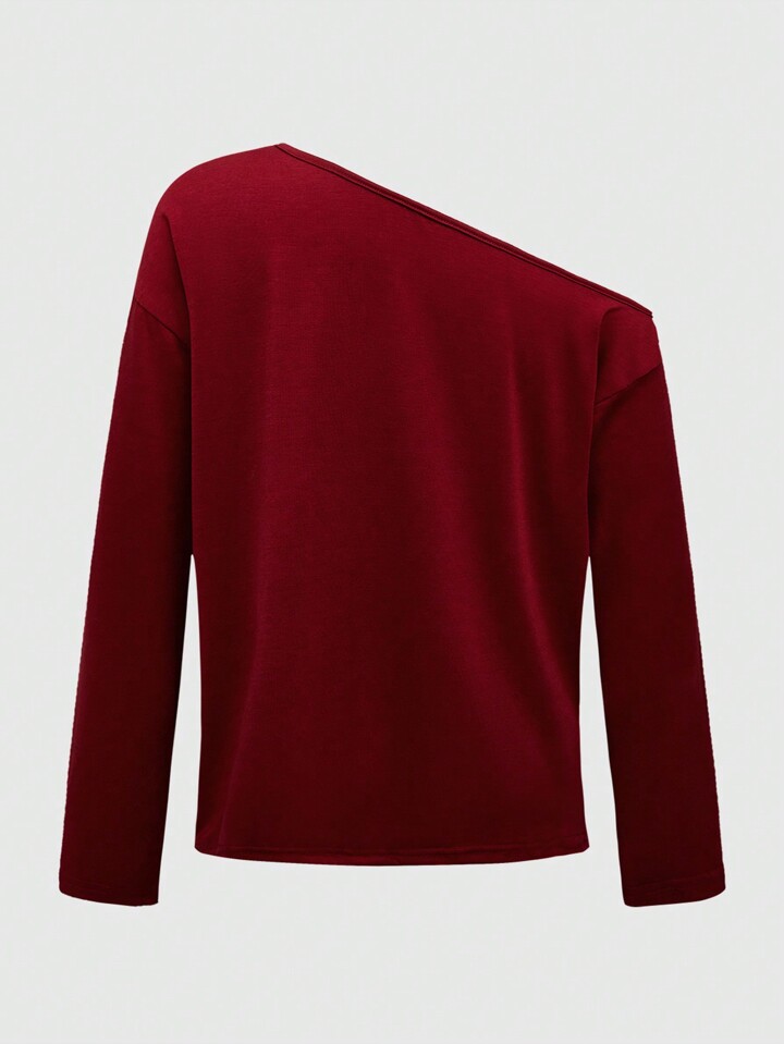 Goth Plus Size Asymmetrical Neck Long Sleeve Cross & Diamante Graphic T-Shirt