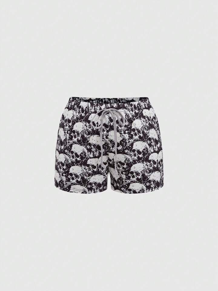 Goth Plus Size Dark Skull Print Stretchy Soft Vertical Stripe Camisole Sleepwear Pajama Set