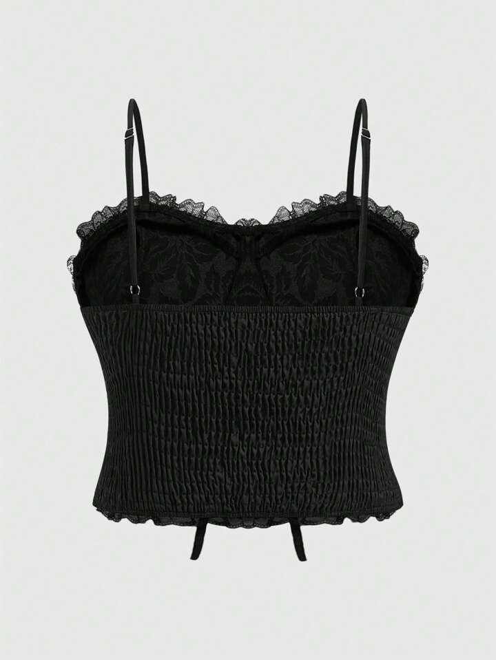 Goth Plus Size Holiday Style Floral Jacquard Lace Trim Crisscross Tie Cami