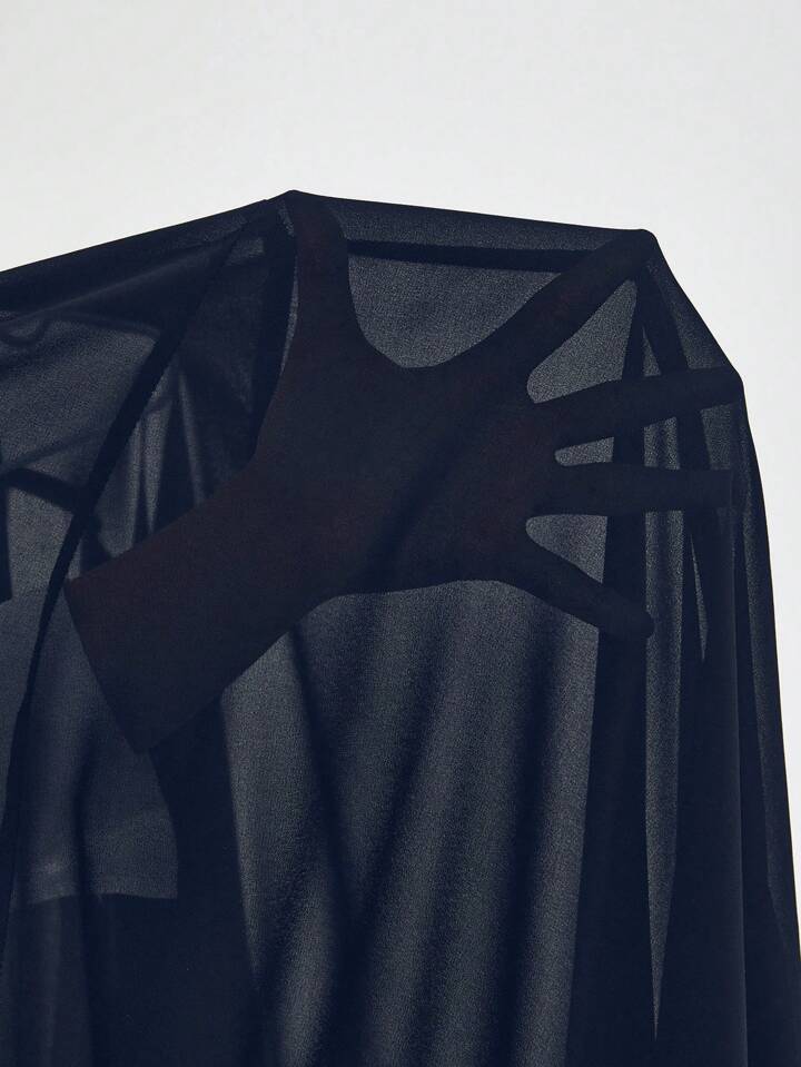 Goth Plus Size Women's Solid Color Stand Collar Loose Batwing Sleeve Chiffon Blouse