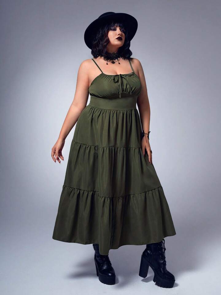 Goth Plus Tie Front Ruffle Hem Cami Dress