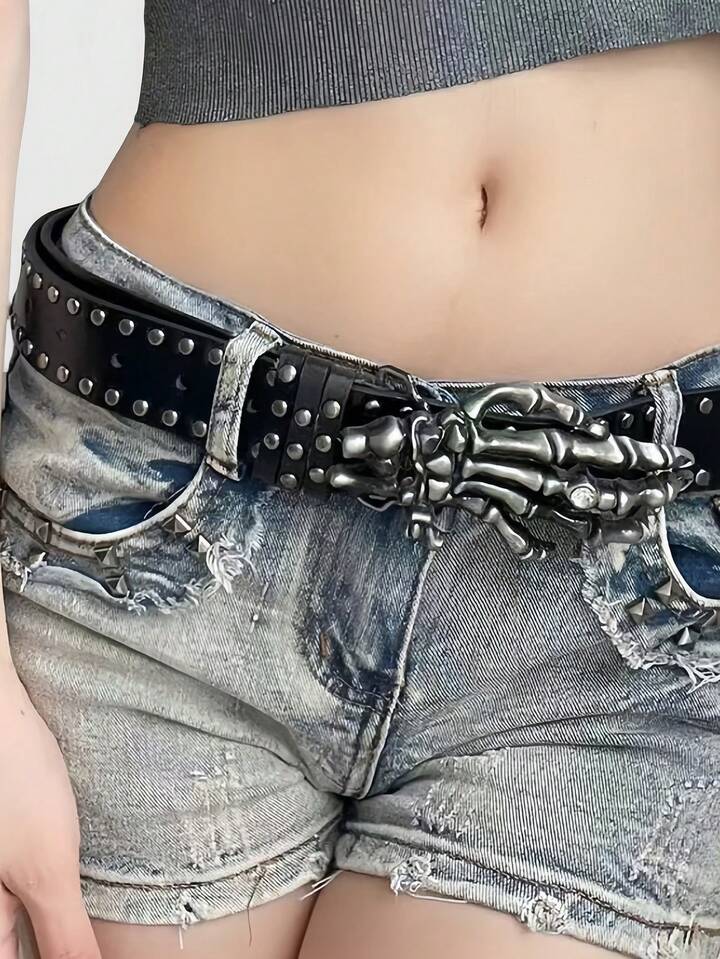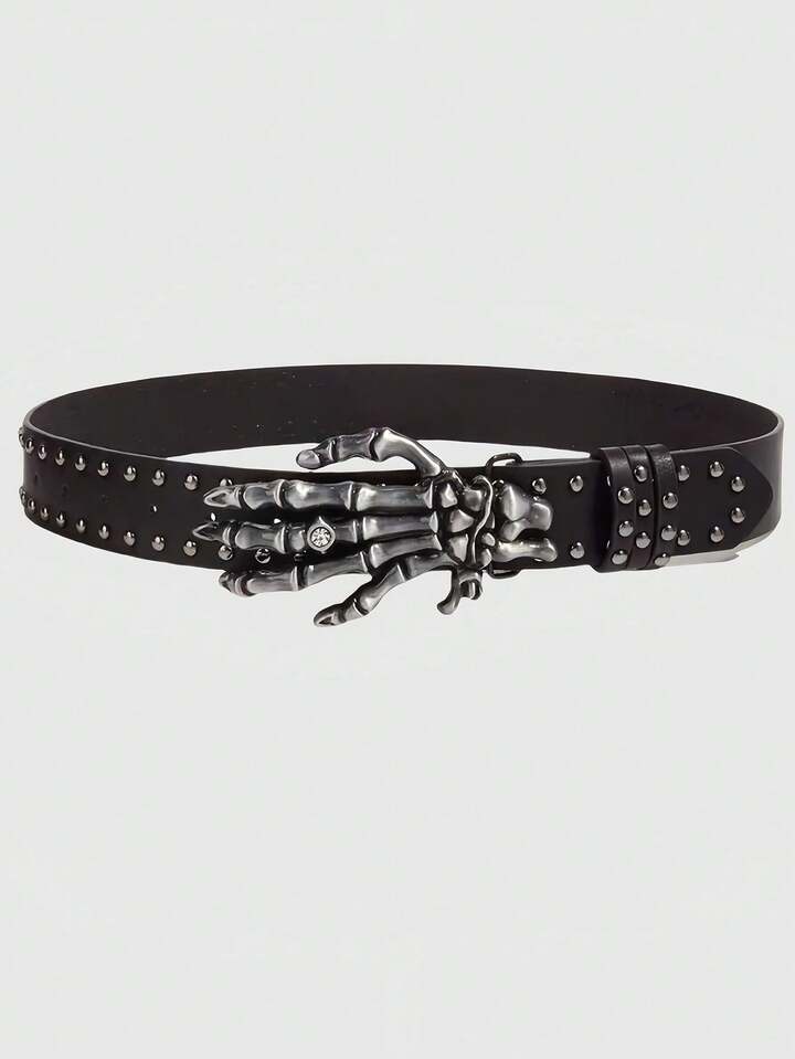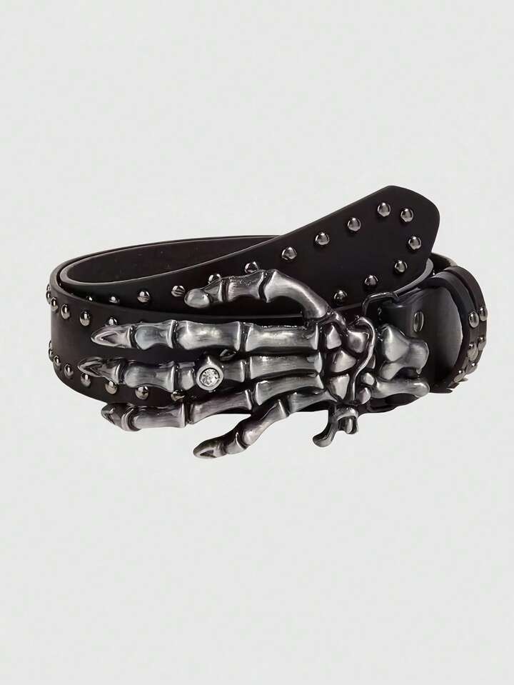 Goth Punk Rivets Skull Belt, Street Fashion Unique Style, Unisex Waistband