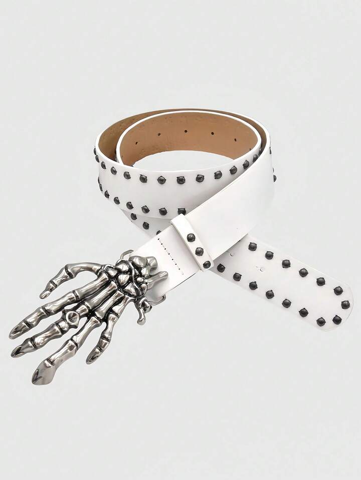 Goth Punk Rock Studded Skull Belt, Unique Subculture Streetwear Accessory For Men & Women