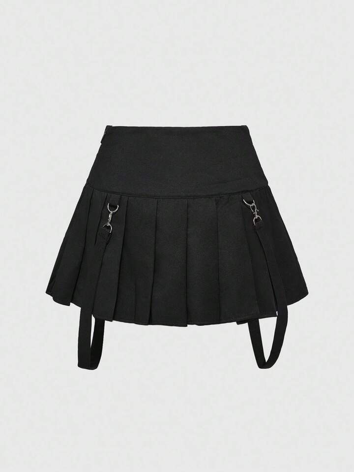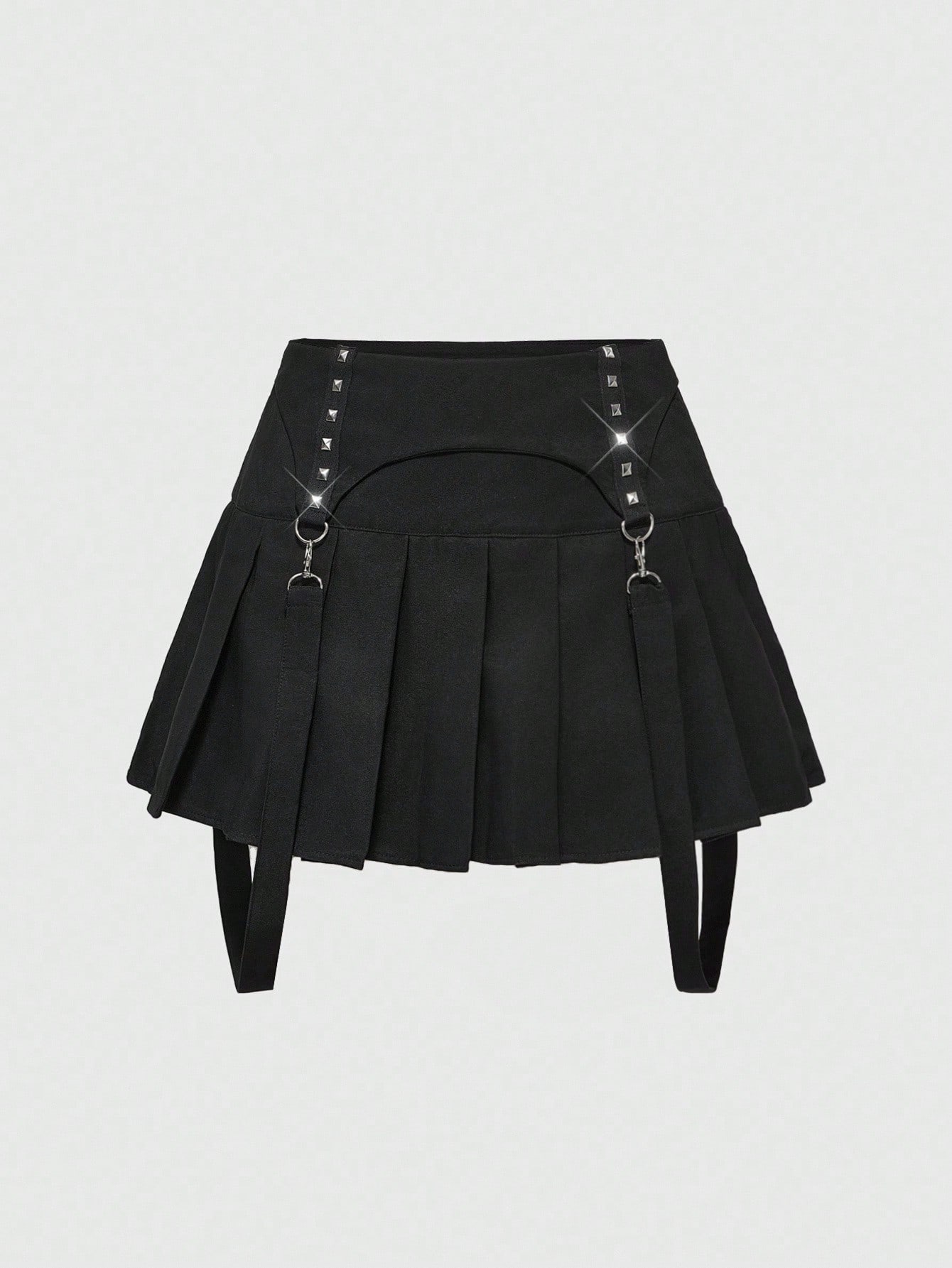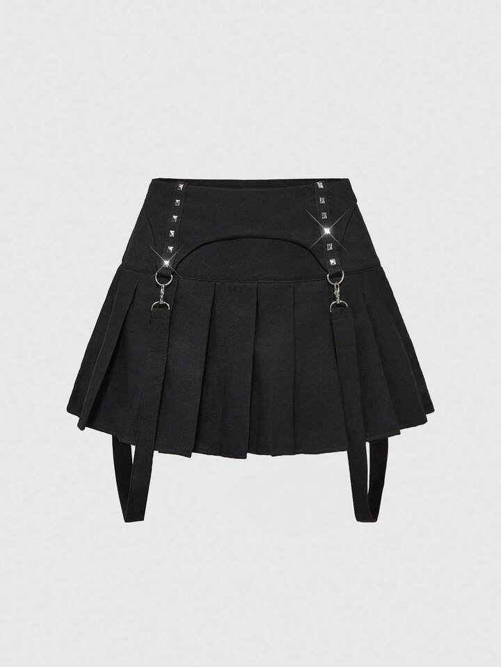 Goth Punk Style Studded Women's Low Waist Pleated Mini Skirt