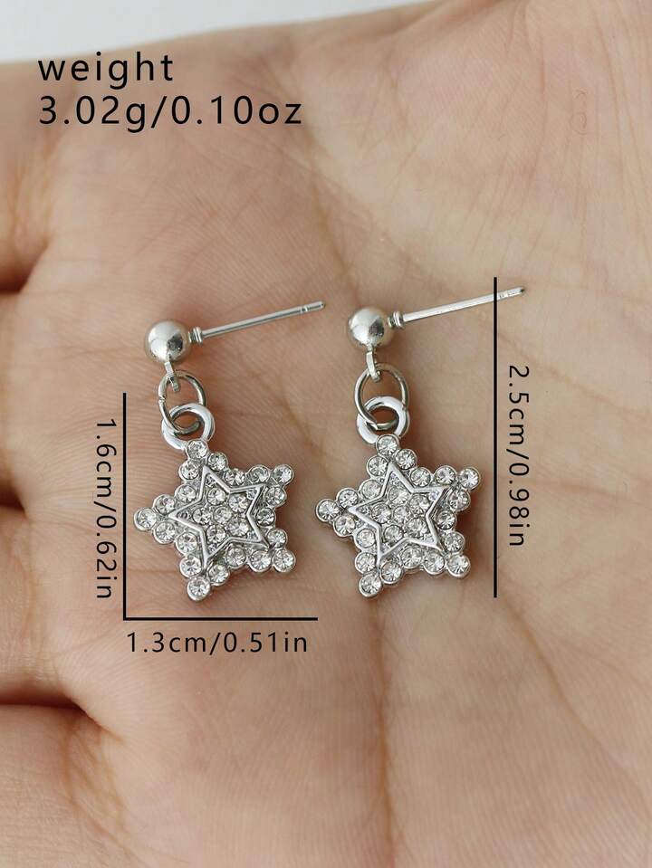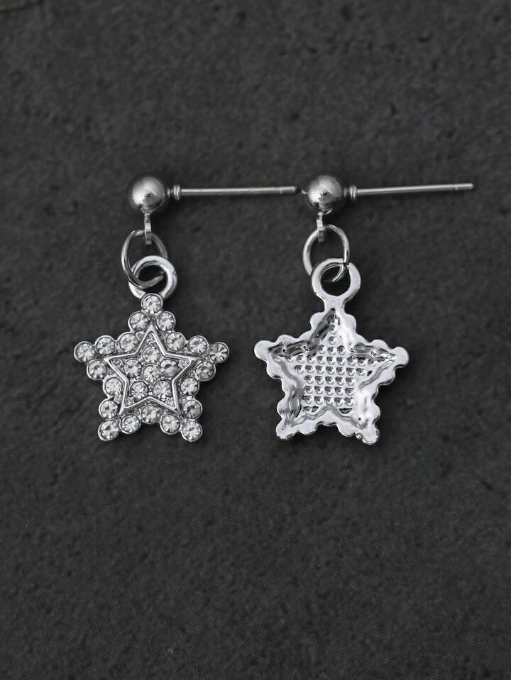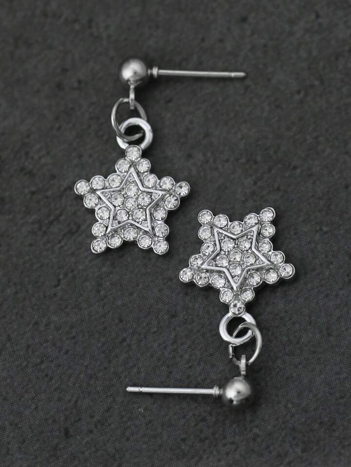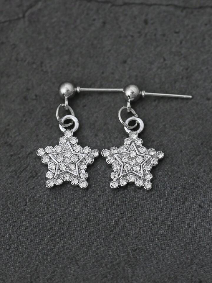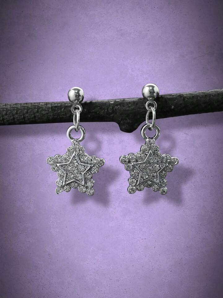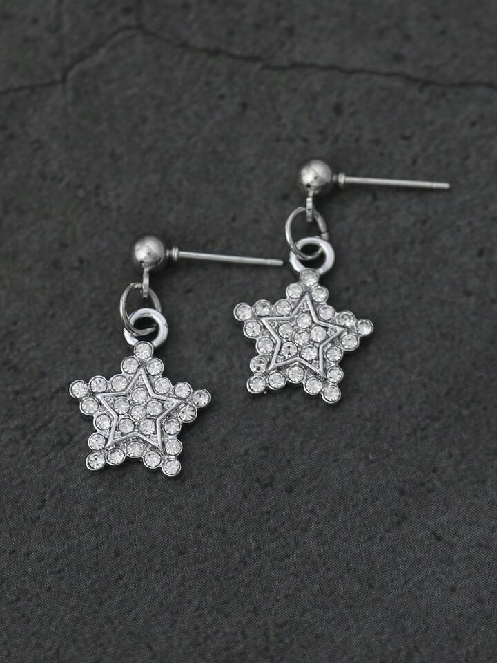 Goth Rhinestone Decor Star Drop Earrings