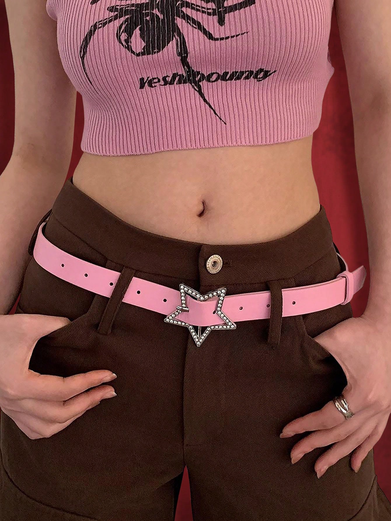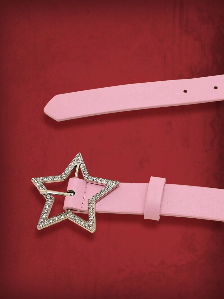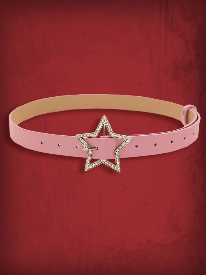 Goth Rhinestone Star Decor Women Belt - Pink