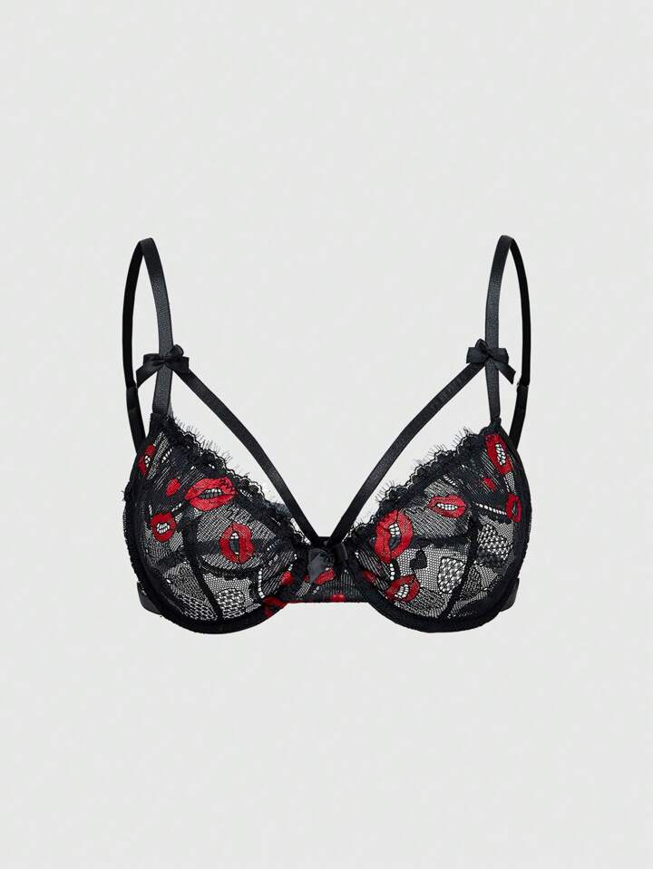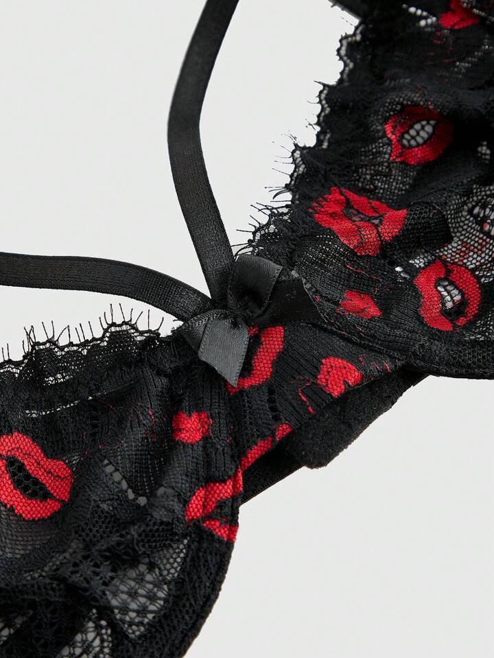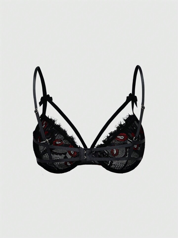 Goth Romantic Heart Cage Bralette With Strapped Bowknot Crotchless Panty Sexy Lingerie Set