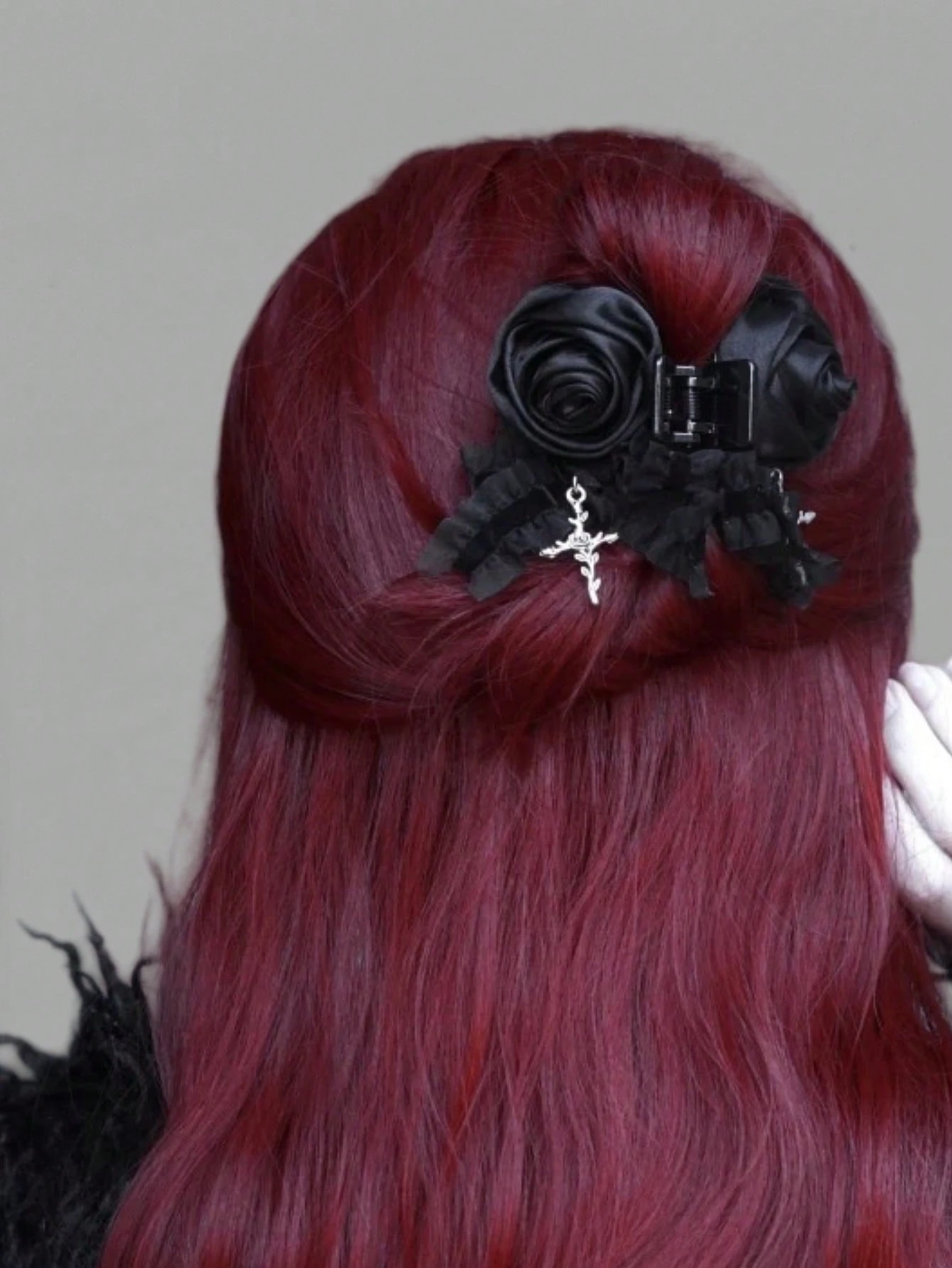 Goth Rose Thorn Lace Hair Clip, Suitable For Everyday Wear