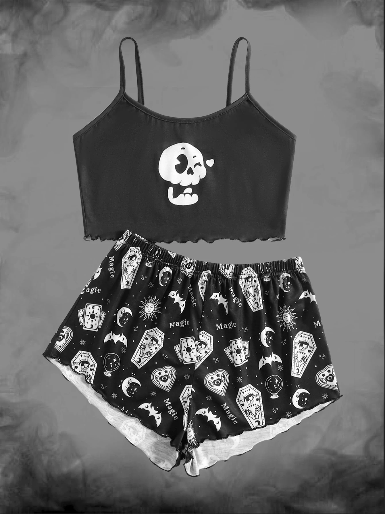 Goth Skull Moon Graphic Lettuce Trim PJ Set