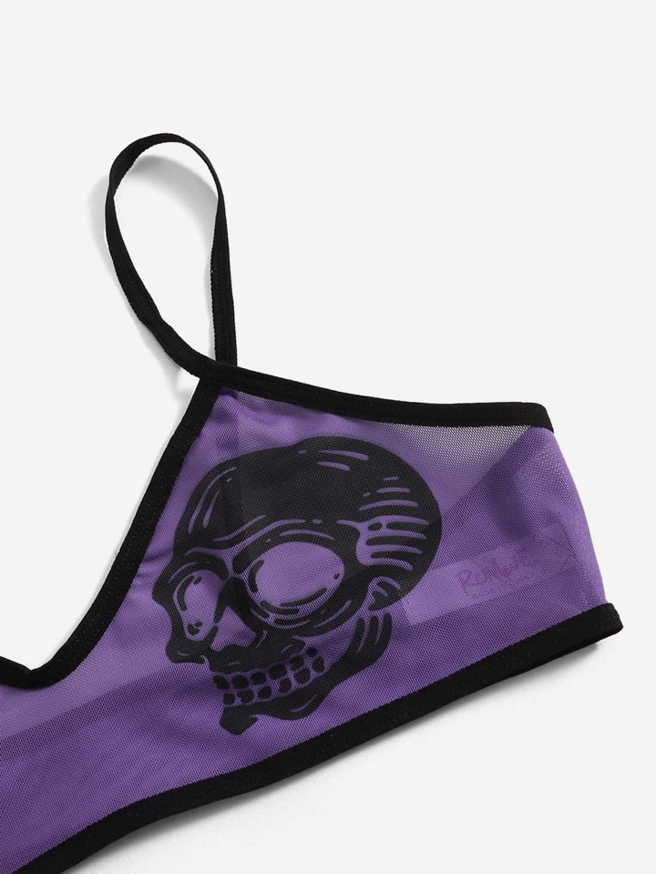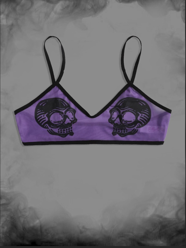Goth Skull Print Mesh Bralette
