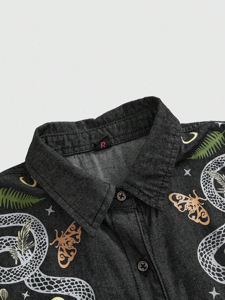 Goth Snake Skin, Butterfly & Moon Print Denim Dress