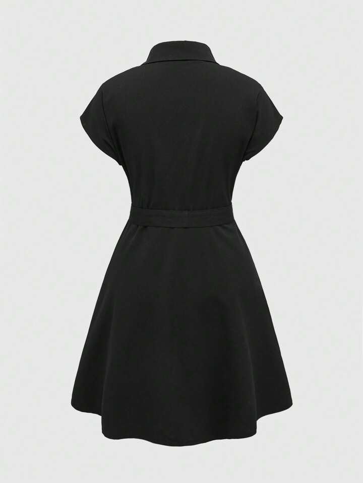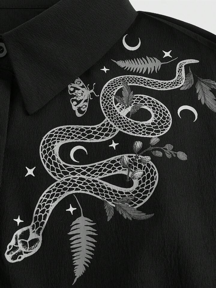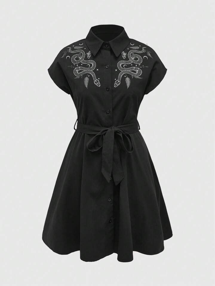 Goth Snake Skin Print Belted Black Short Sleeve Summer Dress