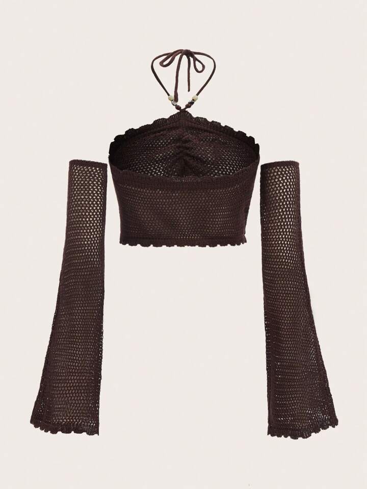 Goth Solid Halter Neck Crop Top & 1pair Oversleeves