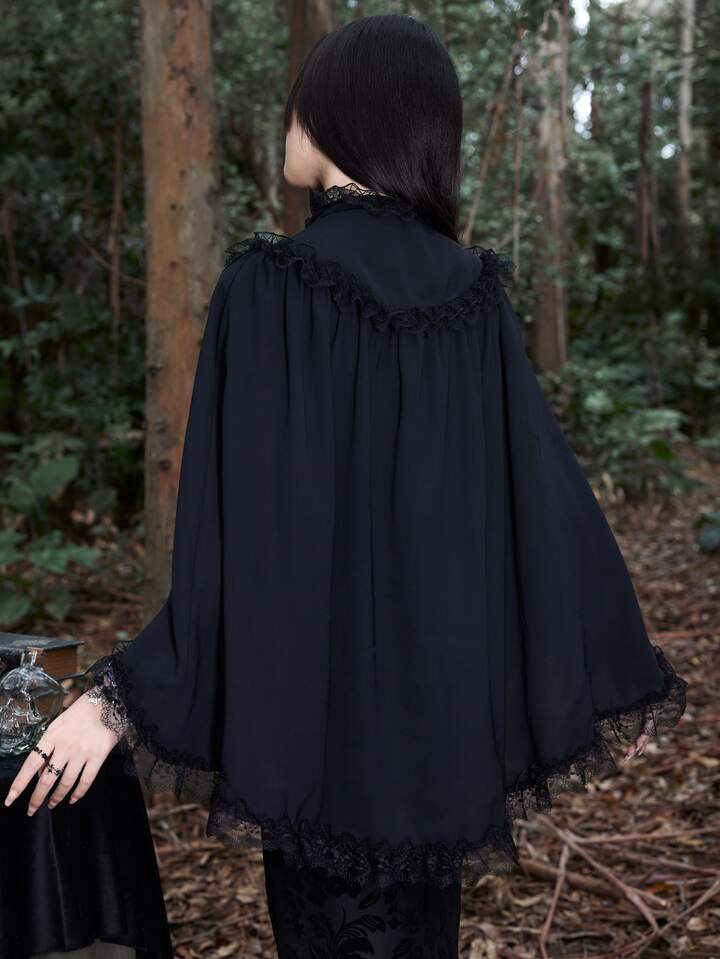 Goth Solid Lace Trim Cape Coat
