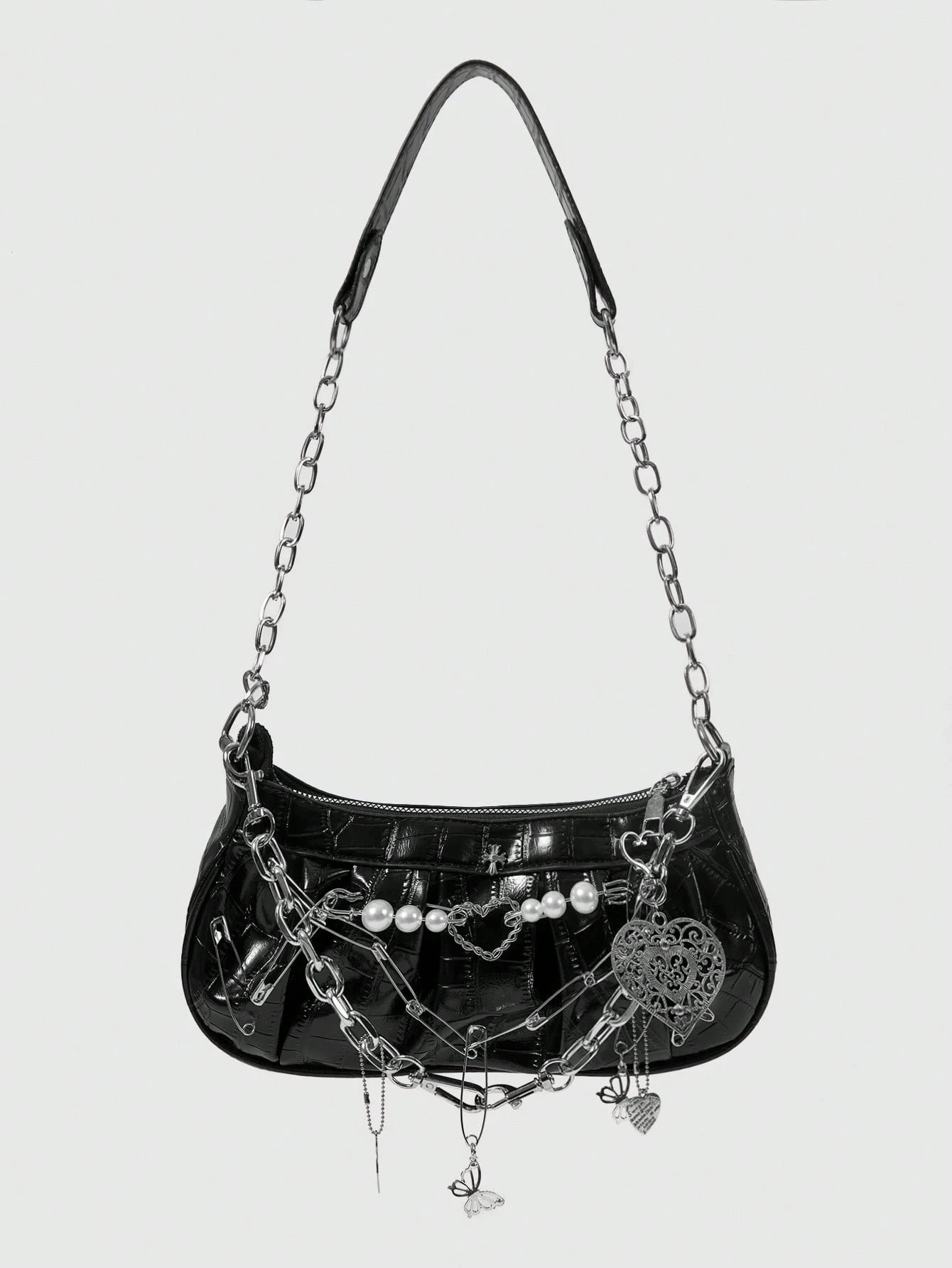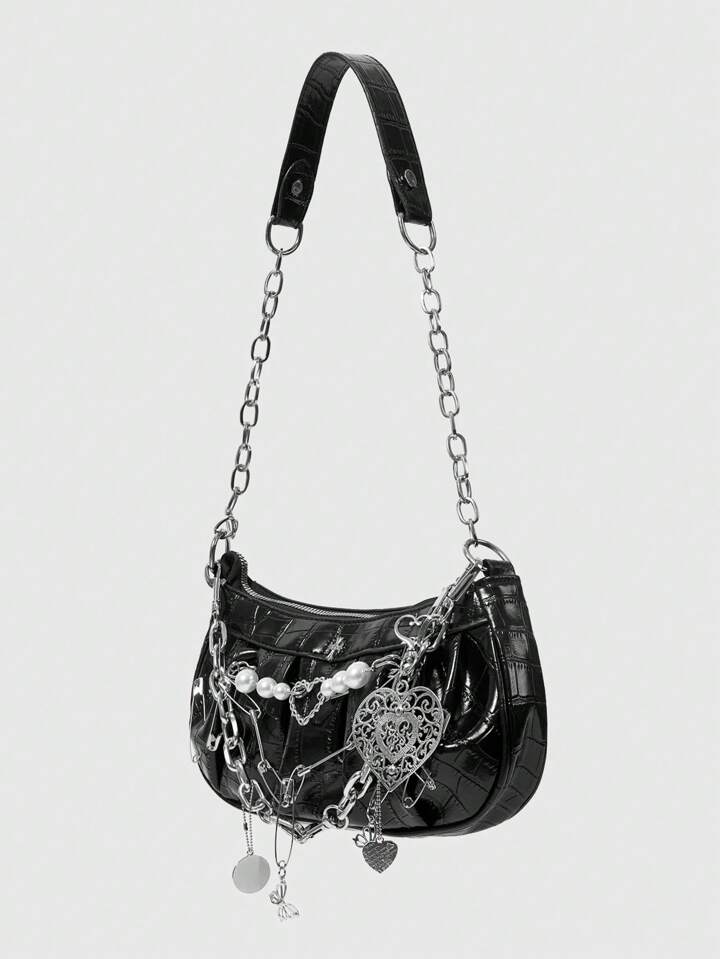 Goth Street Style Black Crossbody Bag (Product Chain Needs DIY)