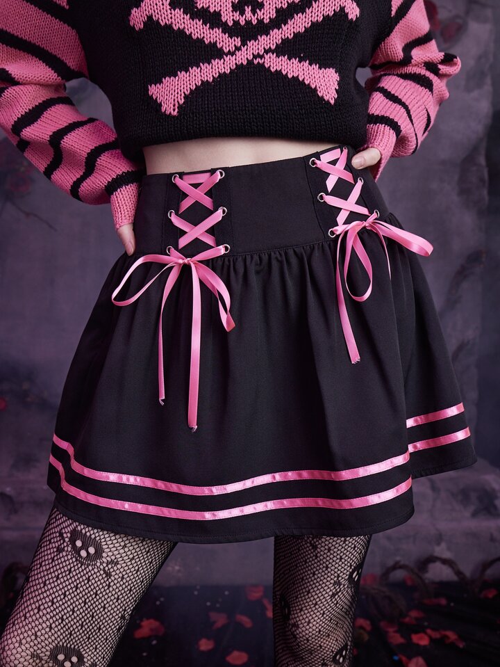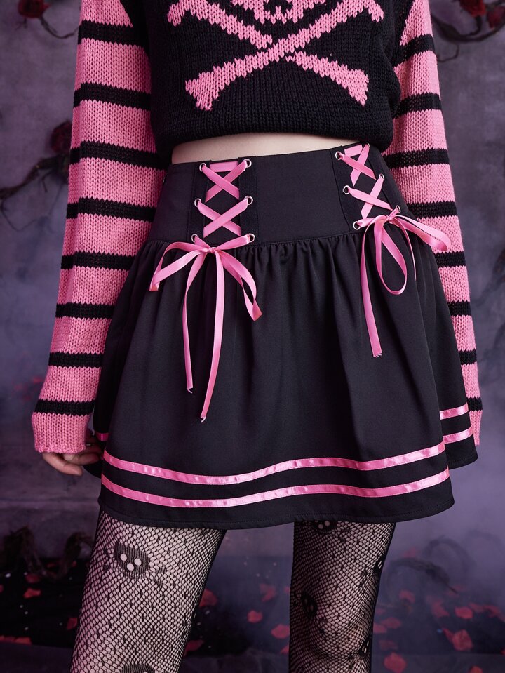 Goth Striped Lace Up Skirt