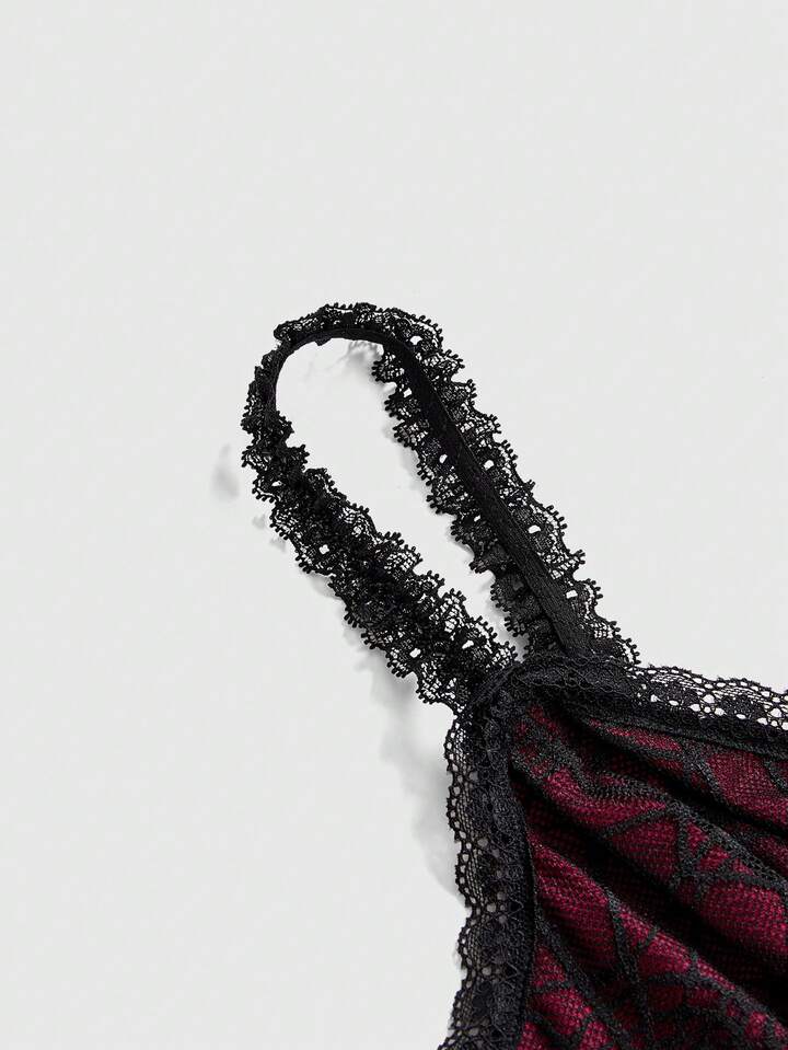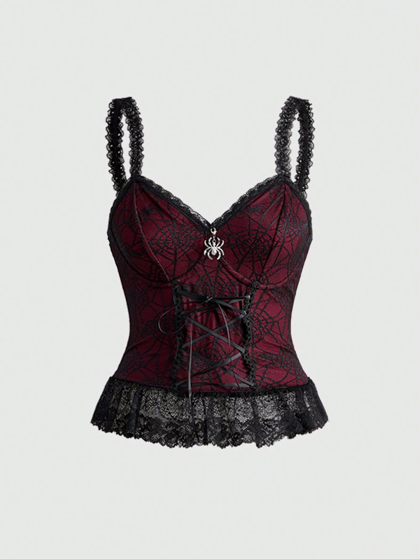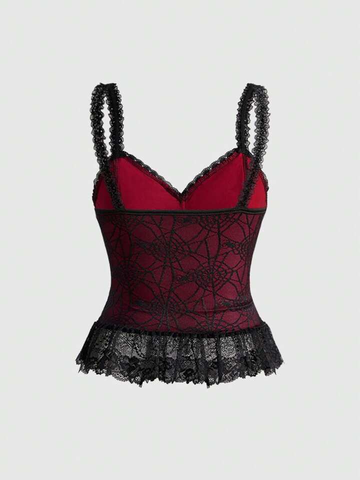 Goth Style Lace-Up Waist Asymmetrical Layered Hem Spider Web Mesh Women Tank Top