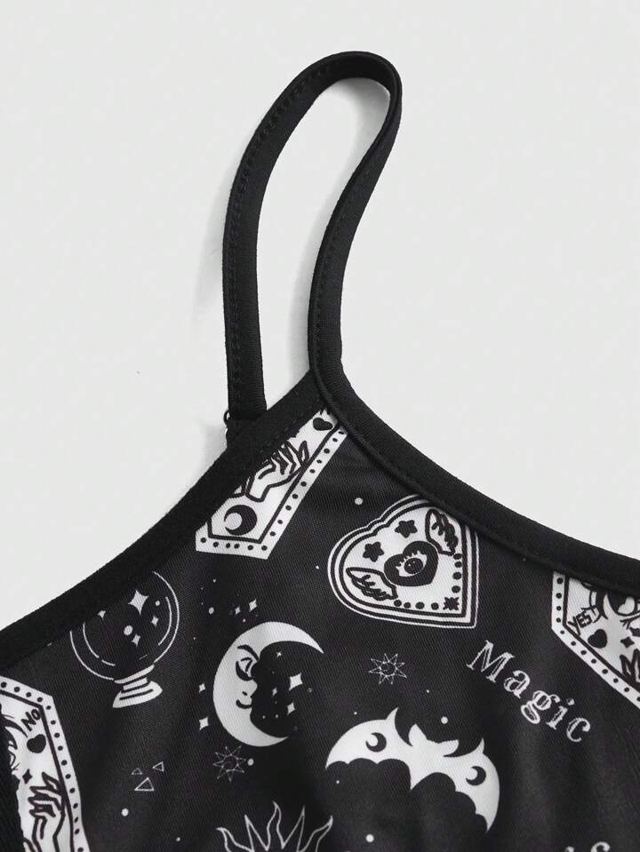 Goth Sun & Moon Graphic Hook And Eye Cami Top