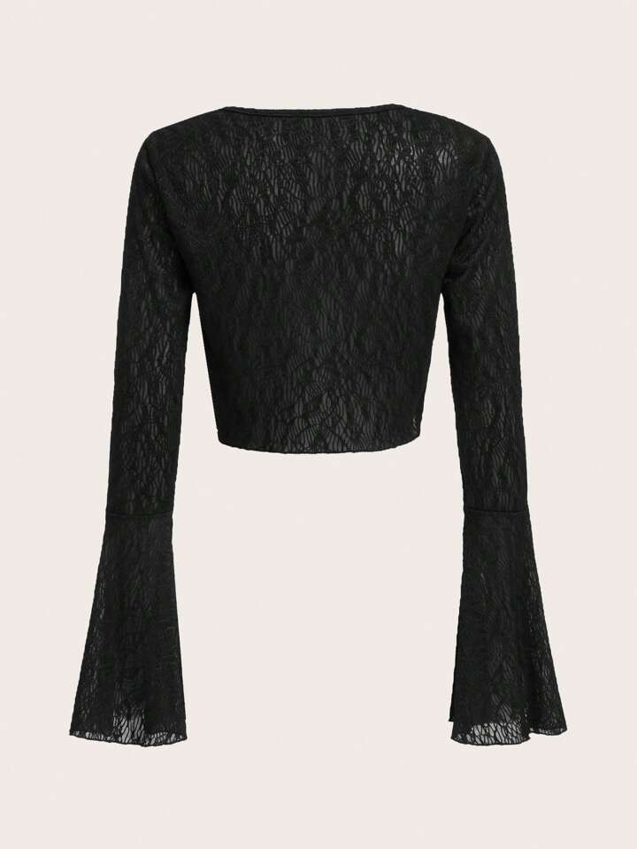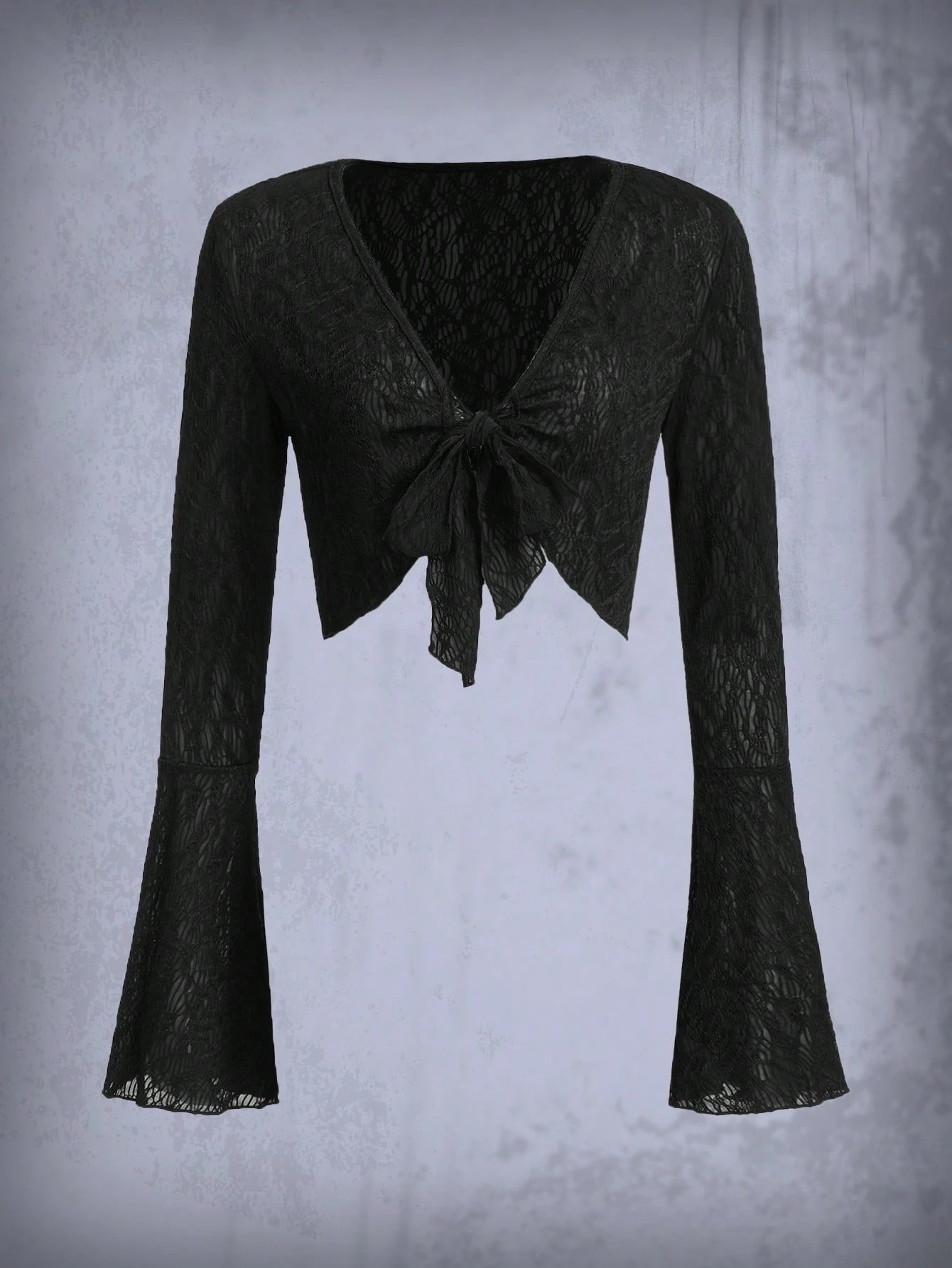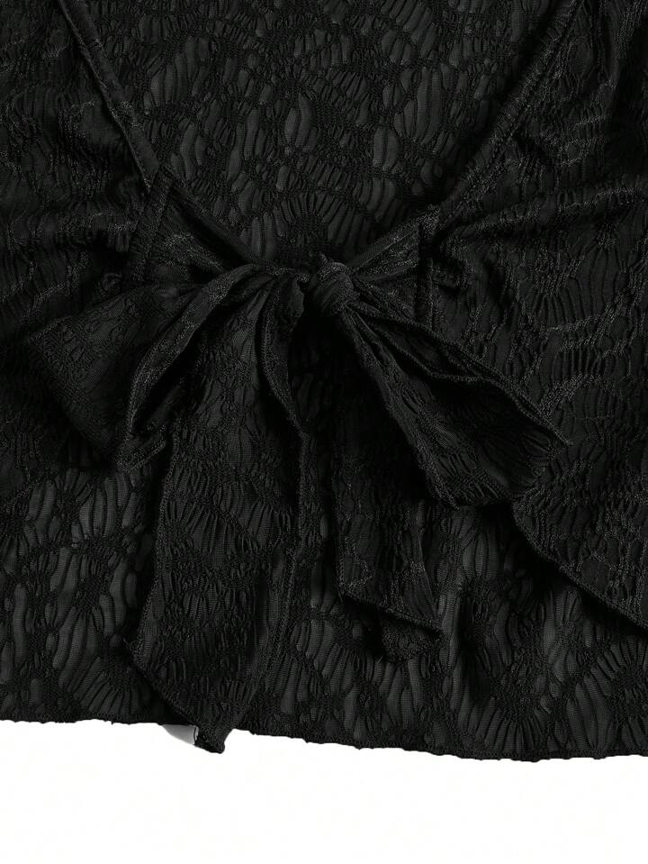 Goth Tie Front Flounce Sleeve Crop Top