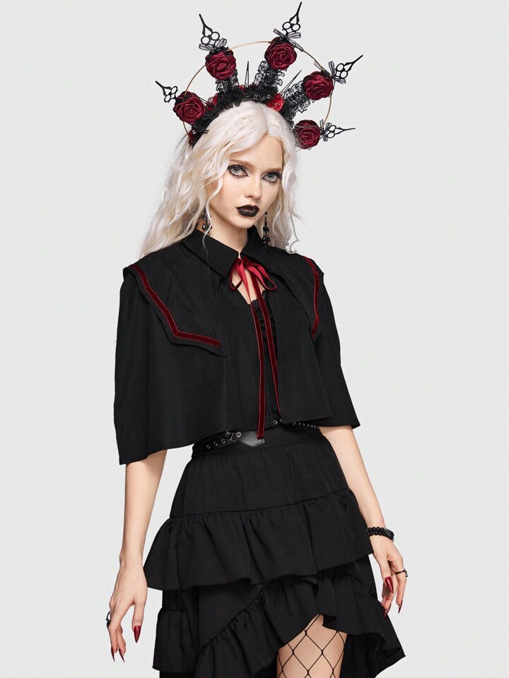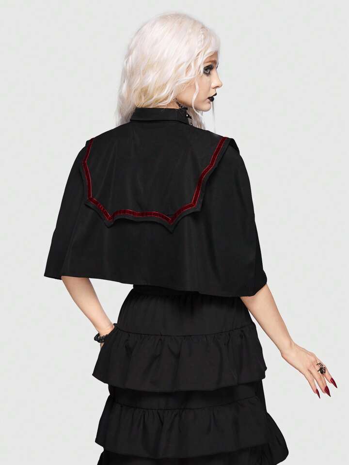 Goth Tie Neck Contrast Binding Cape Coat Without Belt