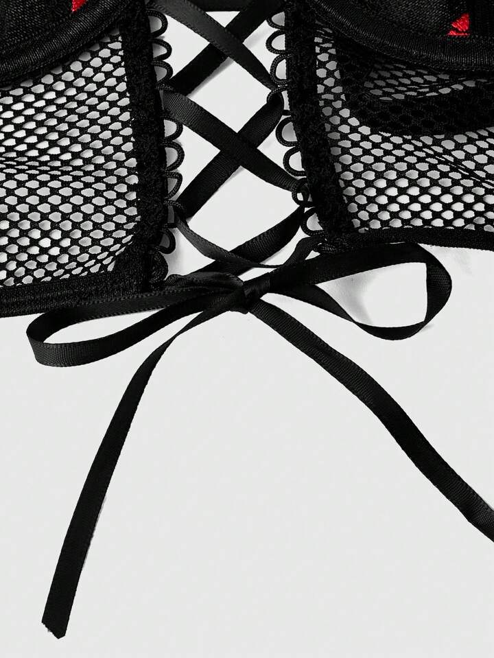 Goth Underwire Strap Lingerie Garter Belt Thong Rose Sexy Lingerie Set 3 Pieces