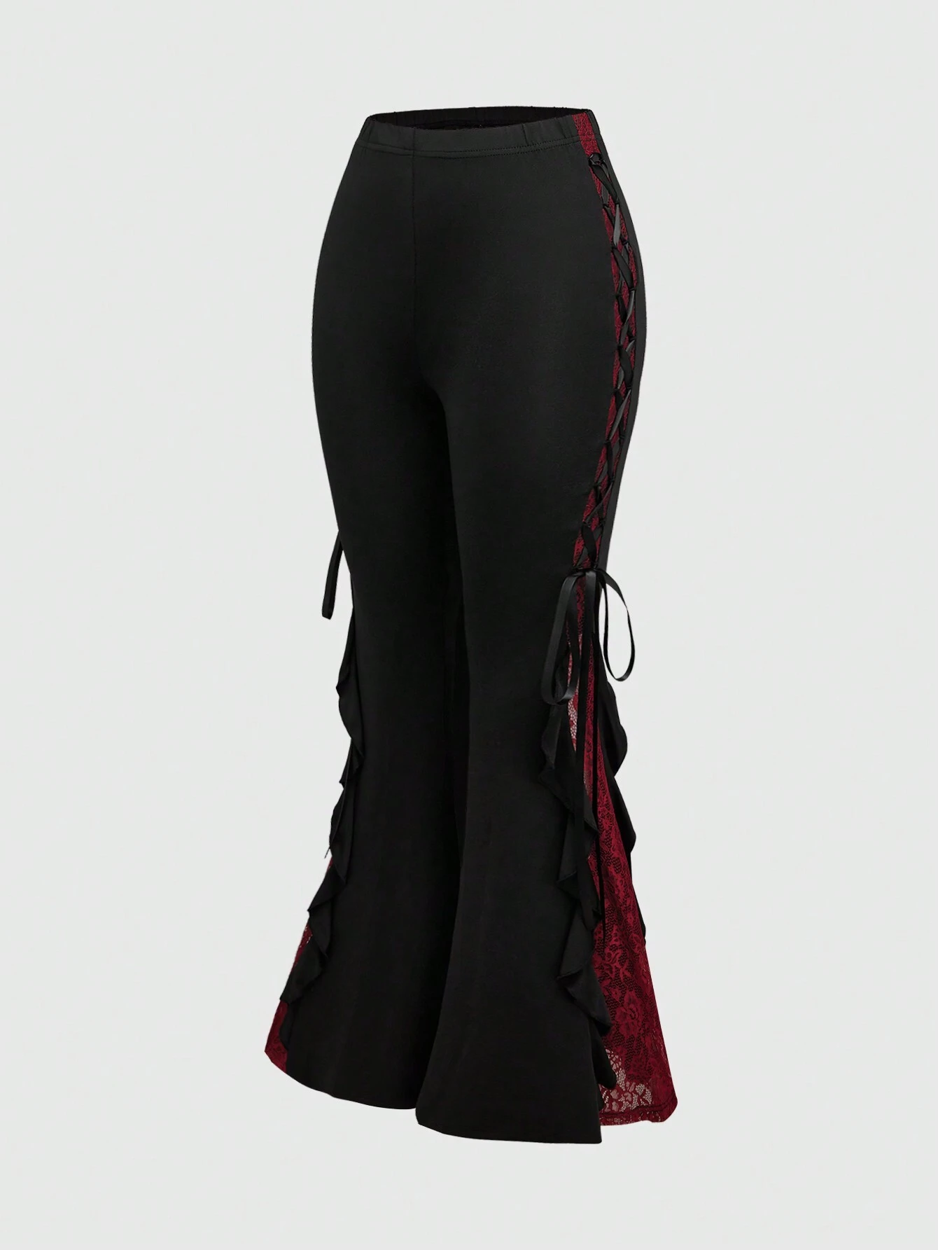 Goth Women Retro Gorgeous "Daydreamer" Ruffle Trim Colorblock Lace Tie Flared Pants