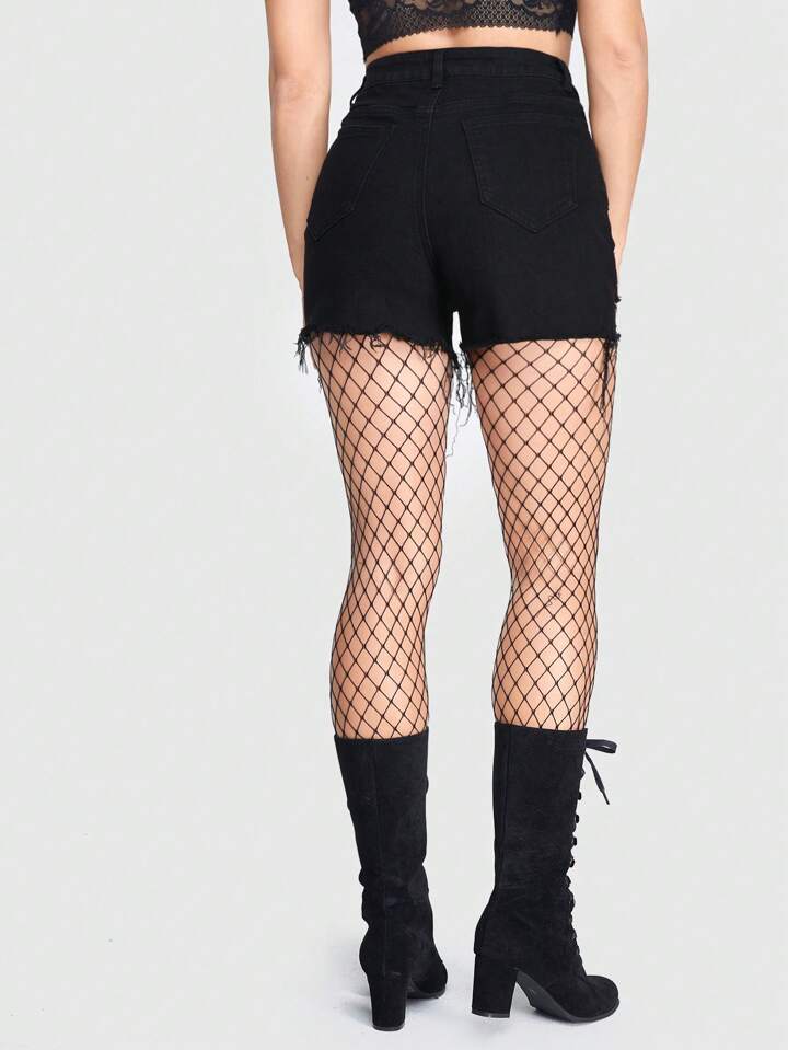 Goth Women'S Abstract Printed Frayed Hem Denim Shorts