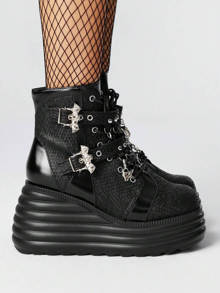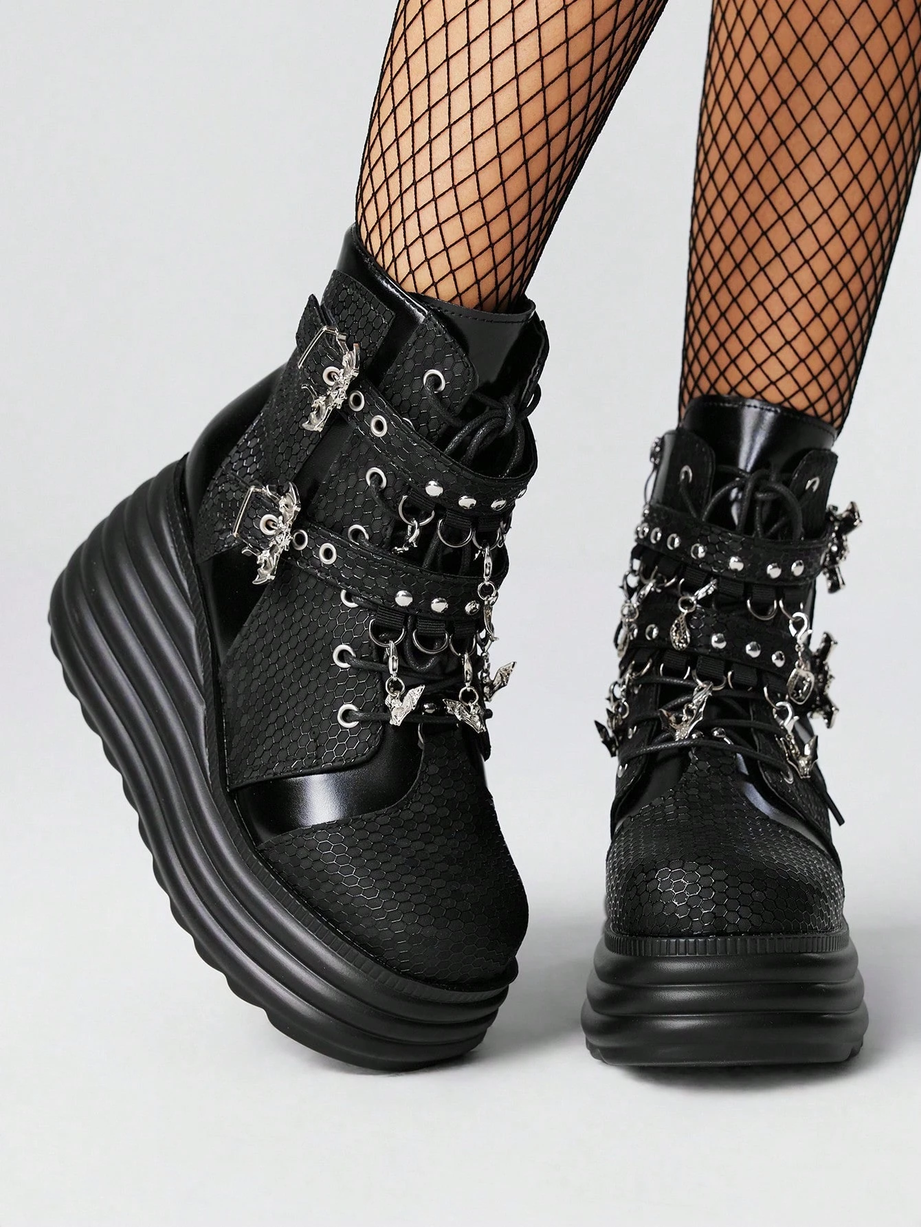 Goth Women's 2025 New Arrival Punk Round Toe Buckle Thick Sole Ankle Boots, Black, Autumn/Winter